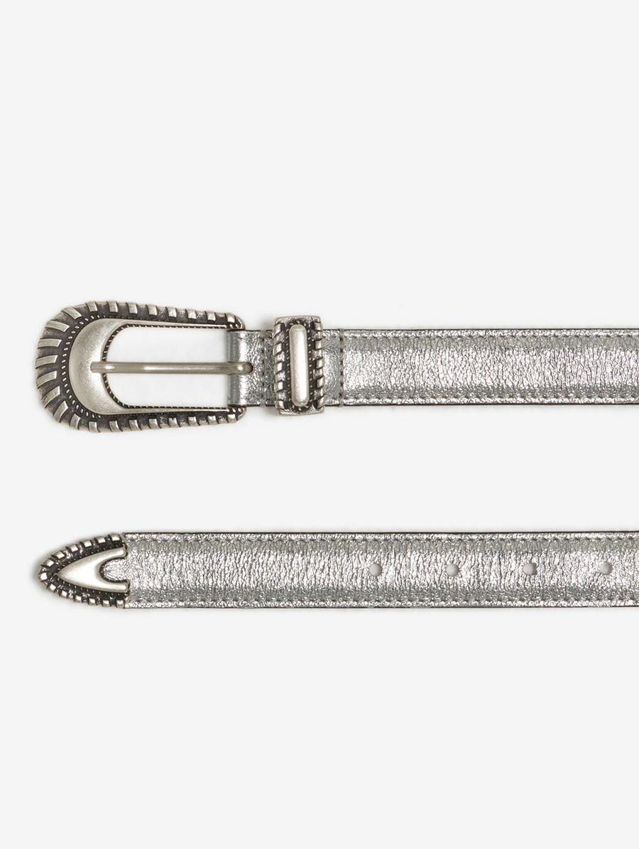 Amy Says... The BELLY METALISE leather belt. Engraved silver-plated buckle and loops. Made in Italy.