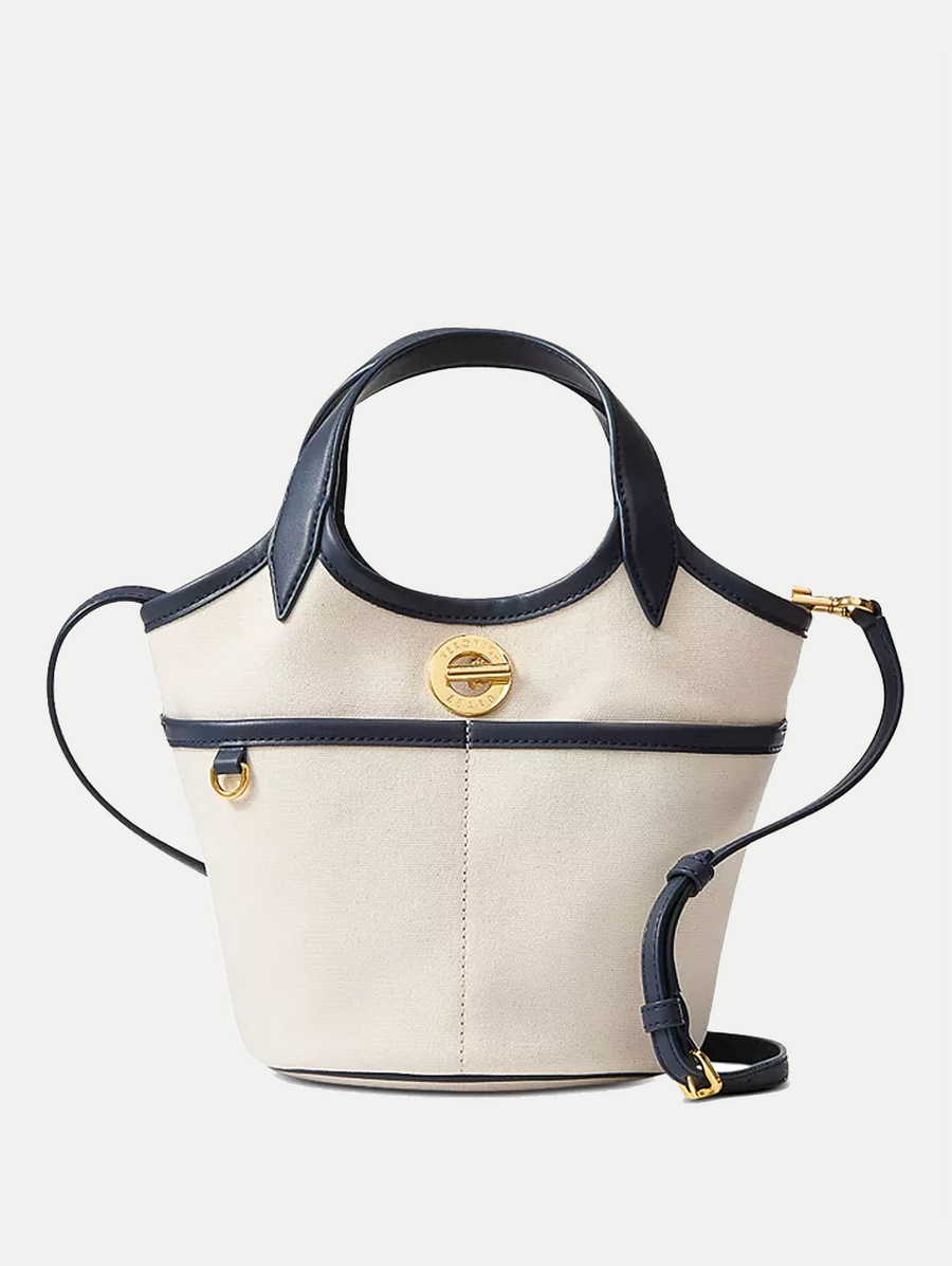 Amy Says... The Anchor bag is your go-to for everyday essentials. Crafted from sturdy yet lightweight ecru cotton canvas, it features navy leather double top handles, plus a matching adjustable, removable strap for a seamless transition from tote to crossbody. Structured sides and a flat base allow it to stand upright for easy access, while silver toggle hardware adds a polished finish. An interior pocket keeps smaller items organized. Perfect for week-to-weekend—just grab and go. Shop Handbags.