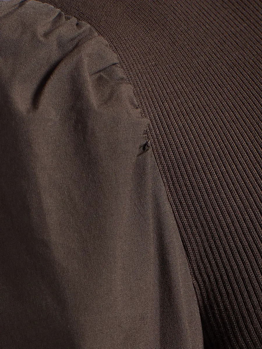 - Knit bodice with woven sleeves