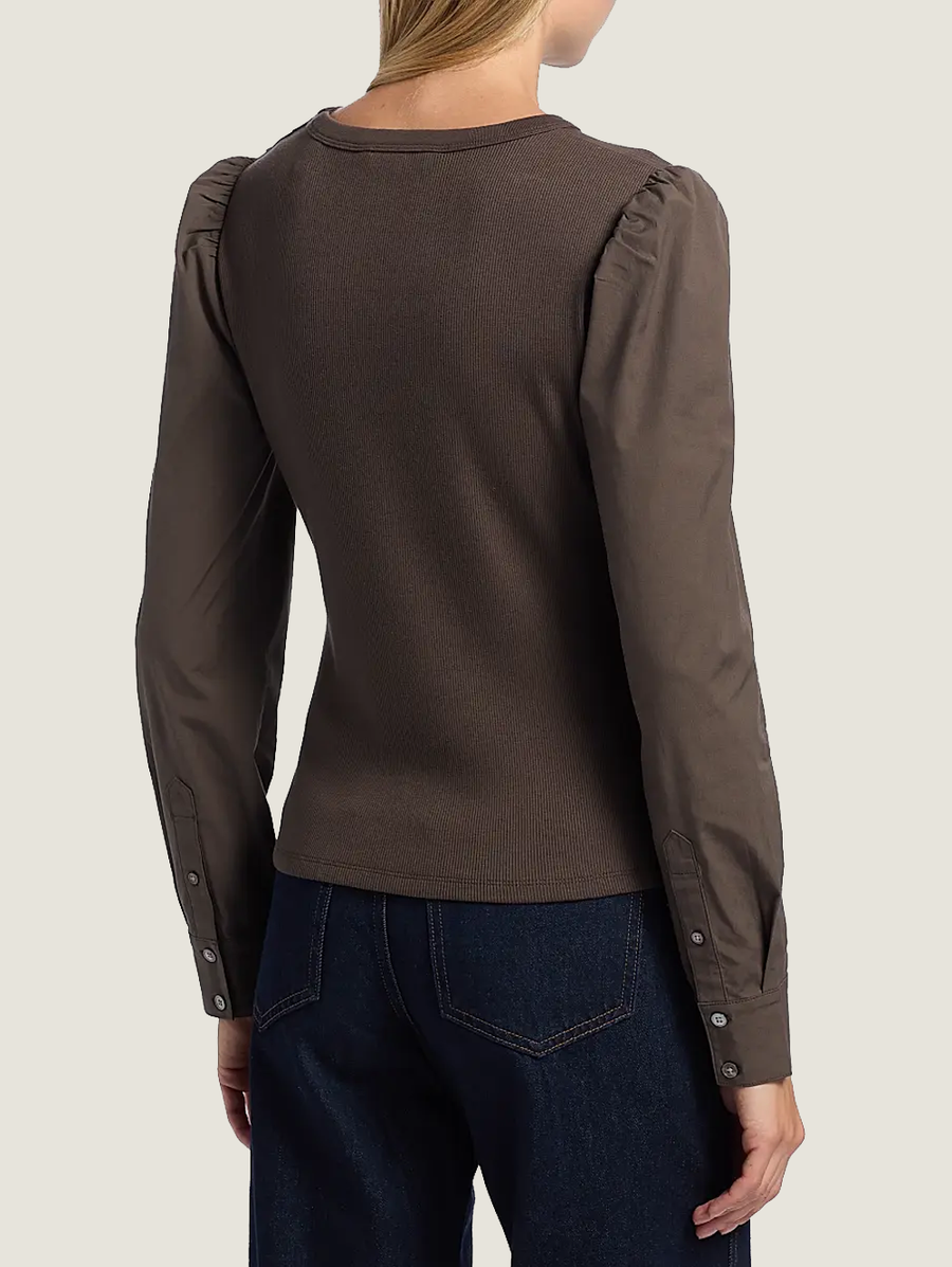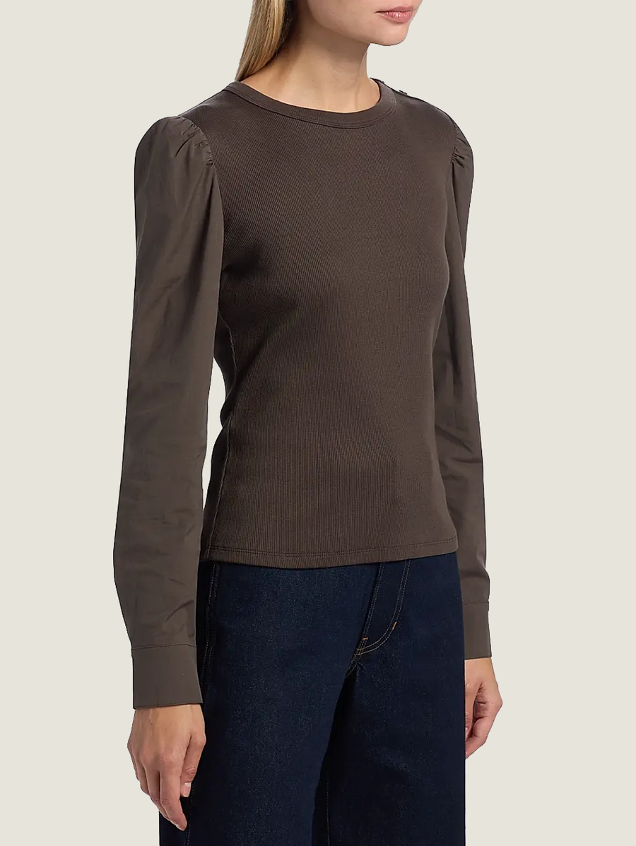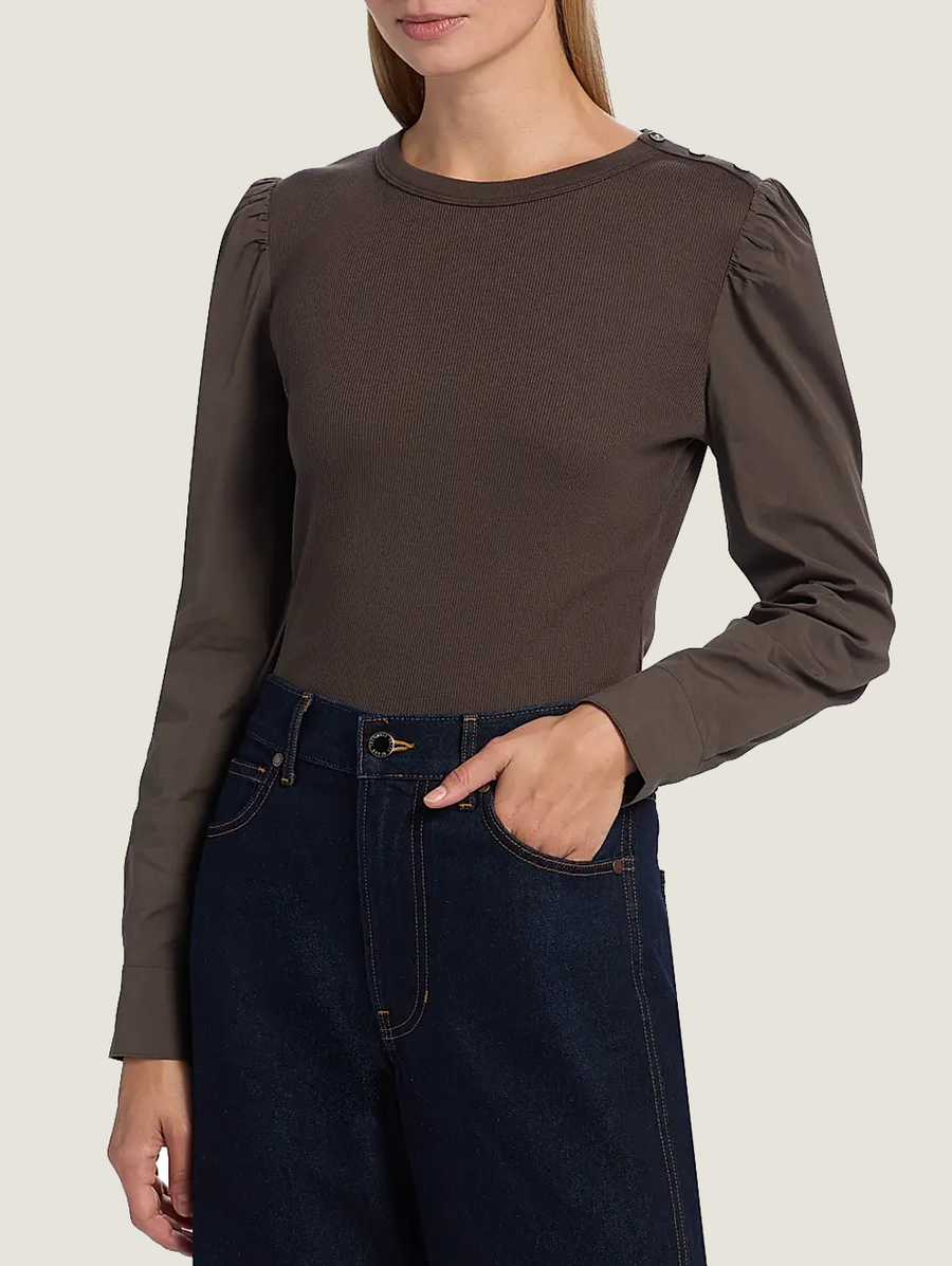 Amy Says... An elevated foundation piece—both perfect on its own or as a layering piece. The Fersia Mixed Media Tee is made from stretch cotton, this style features chic puffed sleeves and a super-flattering fit. This year-round go-to looks great with just about anything, but we especially love it with flared jeans and sleek booties. Shop Tops.