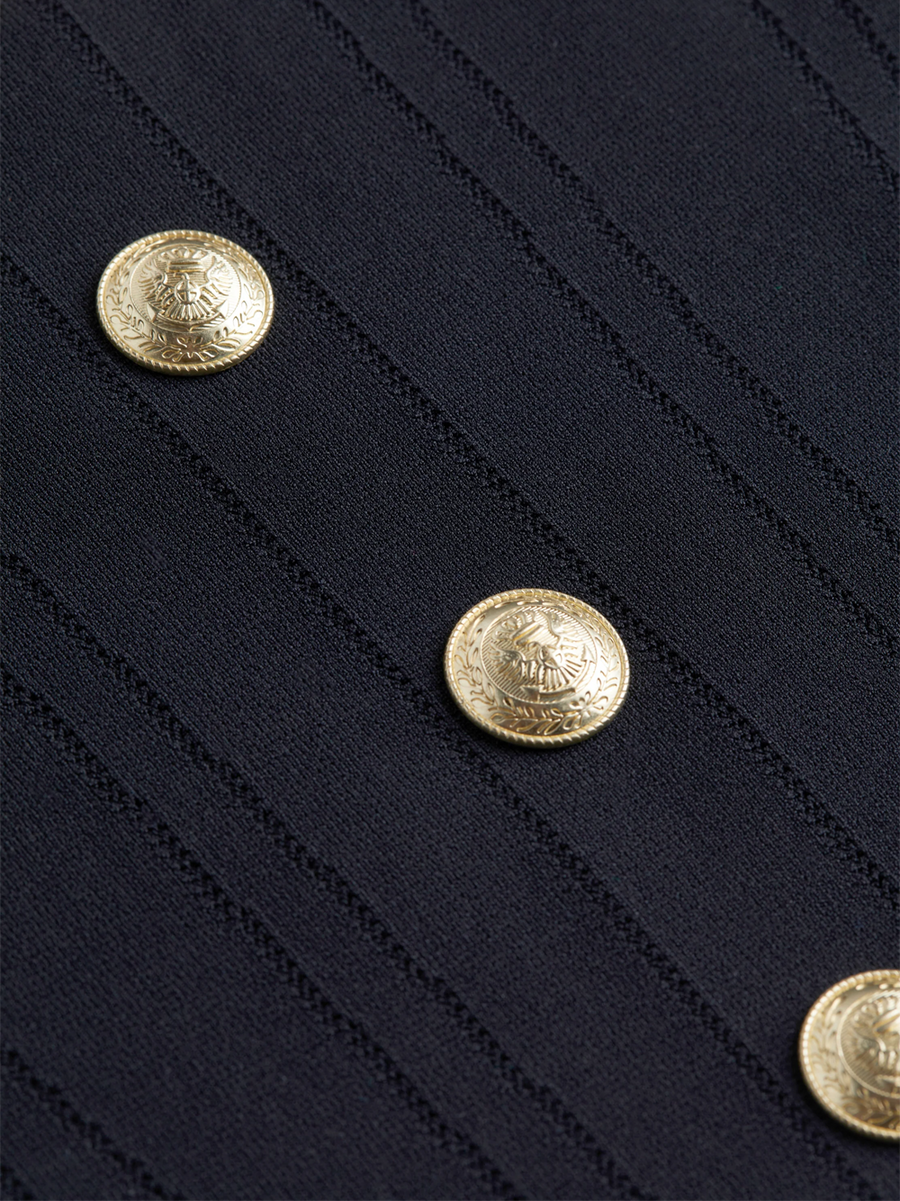 Amy Says... The perfect little something to toss into your wardrobe rotation. The supple ribbed knit of the corset-inspired Saga hugs the figure while offering complete freedom of movement for all-day (and night) wear. Front and back square necklines and our iconic embossed dome buttons add elegance. Dress it down with sneakers or add a sky high heel for evening.