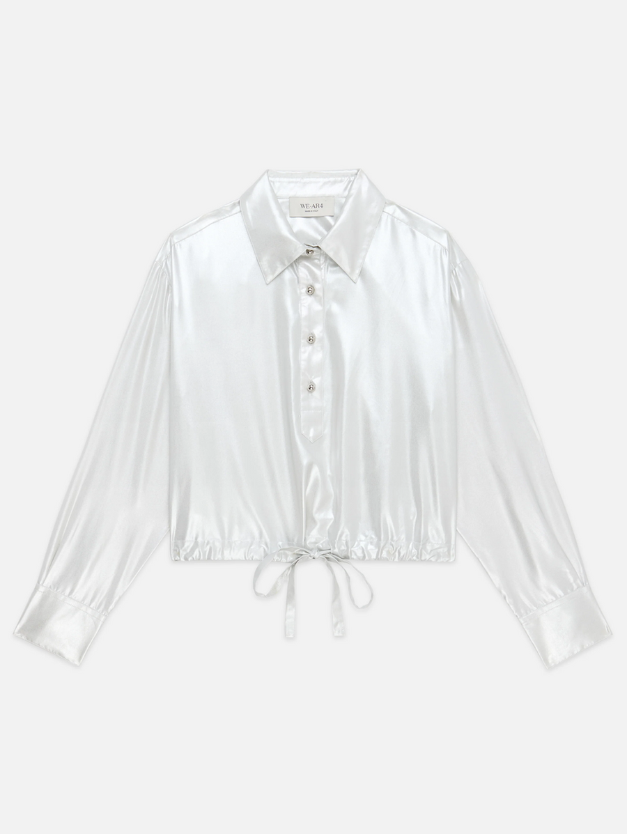 Amy Says... Effortlessly poised and unapologetically bold, the Crawford Blouse embodies a new kind of modern femininity. Crafted from luxurious silk or cupro, this piece redefines the classic shirt by blending polished tailoring with rebellious fluidity. Its cropped silhouette and clean placket with distinct Italian bold buttons add a touch of drama, while the functional drawstring at the hem allows you to transition the silhouette from relaxed to cinched.  Shop Blouses.