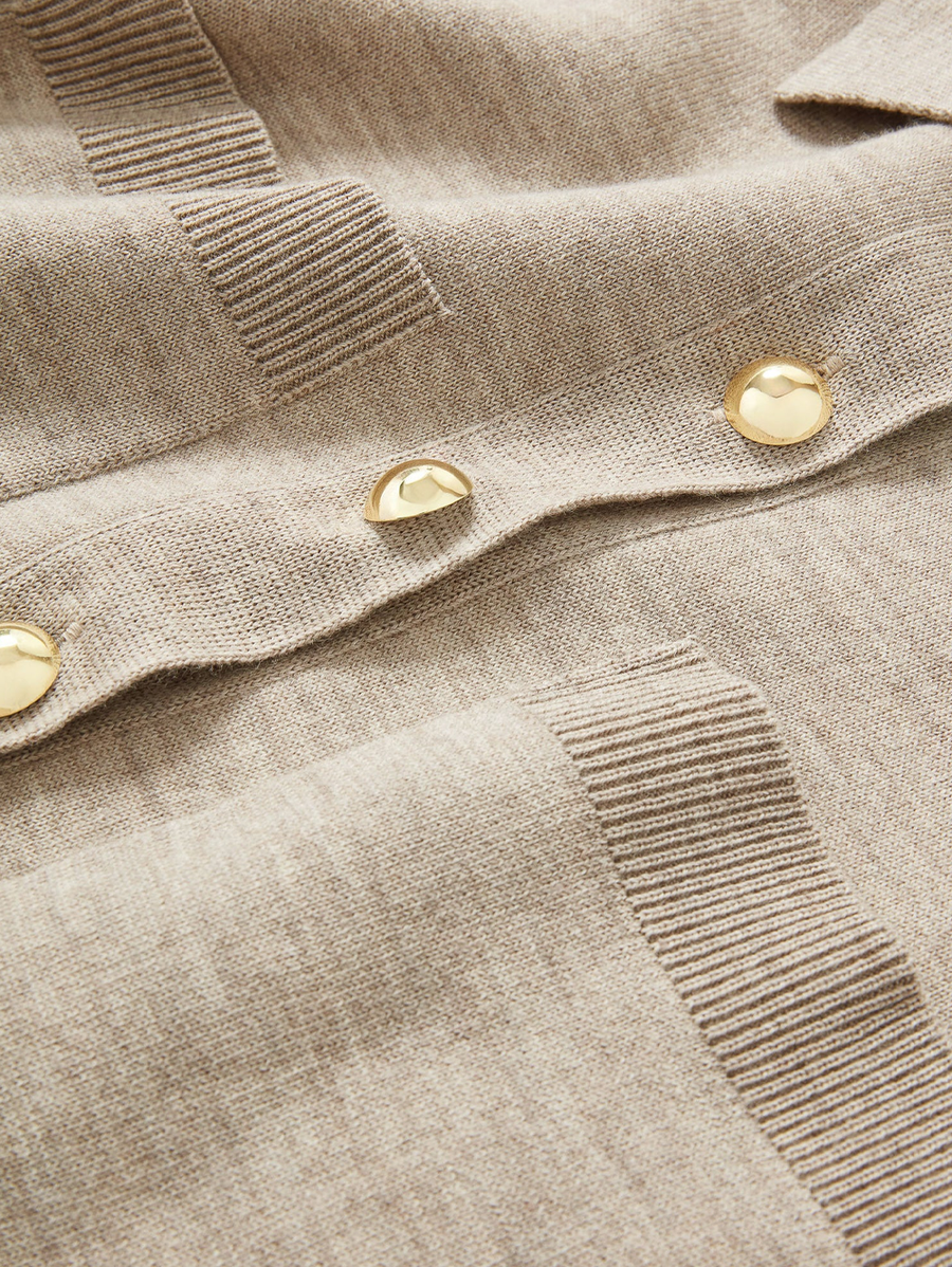 Amy Says... An elevated take on the sweater dress. Crafted from pure Merino wool with an exceptionally soft feel, the Madden knit dress is as luxurious as it is practical. Cut for a boxy fit, it features two front patch pockets, cuffed elbow-length sleeves, and a crisp collar that flows into a half placket. Chunky gold statement buttons complete the look. It’s made for day-to-night versatility—just add flats for day and swap in strappy heels after dark. Shop Dresses.