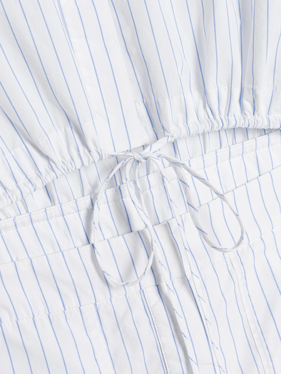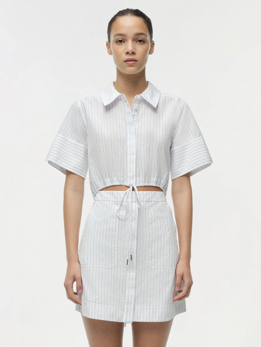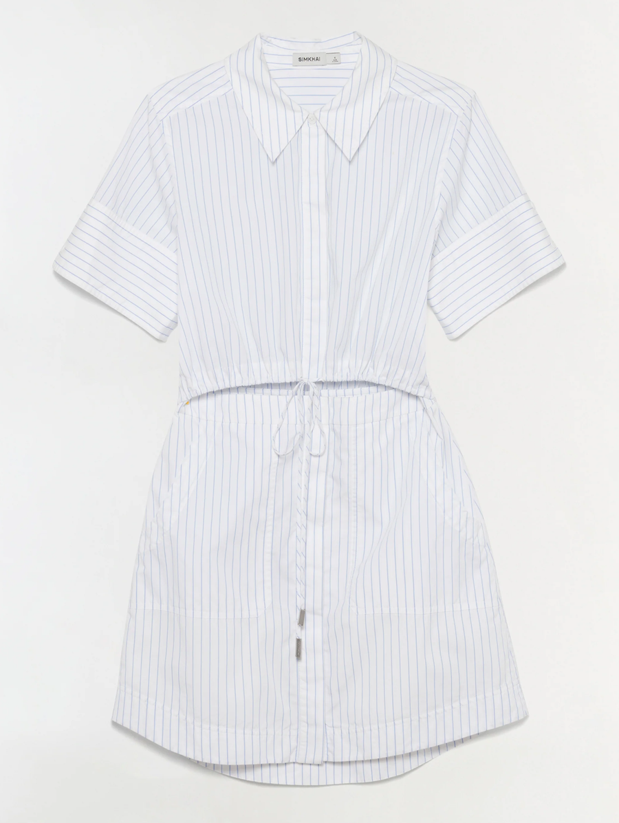 Amy Says... The Marcy Cotton Mini Shirt Dress in White Stripe. Crafted in a button-up style, this cotton mini dress combines polished shirting details with exaggerated sleeves, creating a balanced, contemporary look. Shop Dresses.