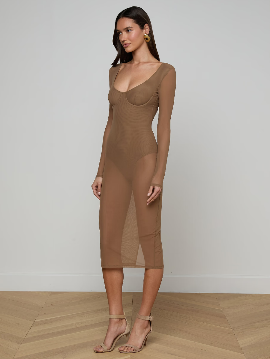 Amy Says... Equal parts daring and chic, the Sorella dress is what you wear when subtle isn’t the goal. A sheer layer of stretch mesh hugs the figure over a built-in bodysuit that traces every curve. Bold, unapologetic, and designed to be seen. Shop Dresses.