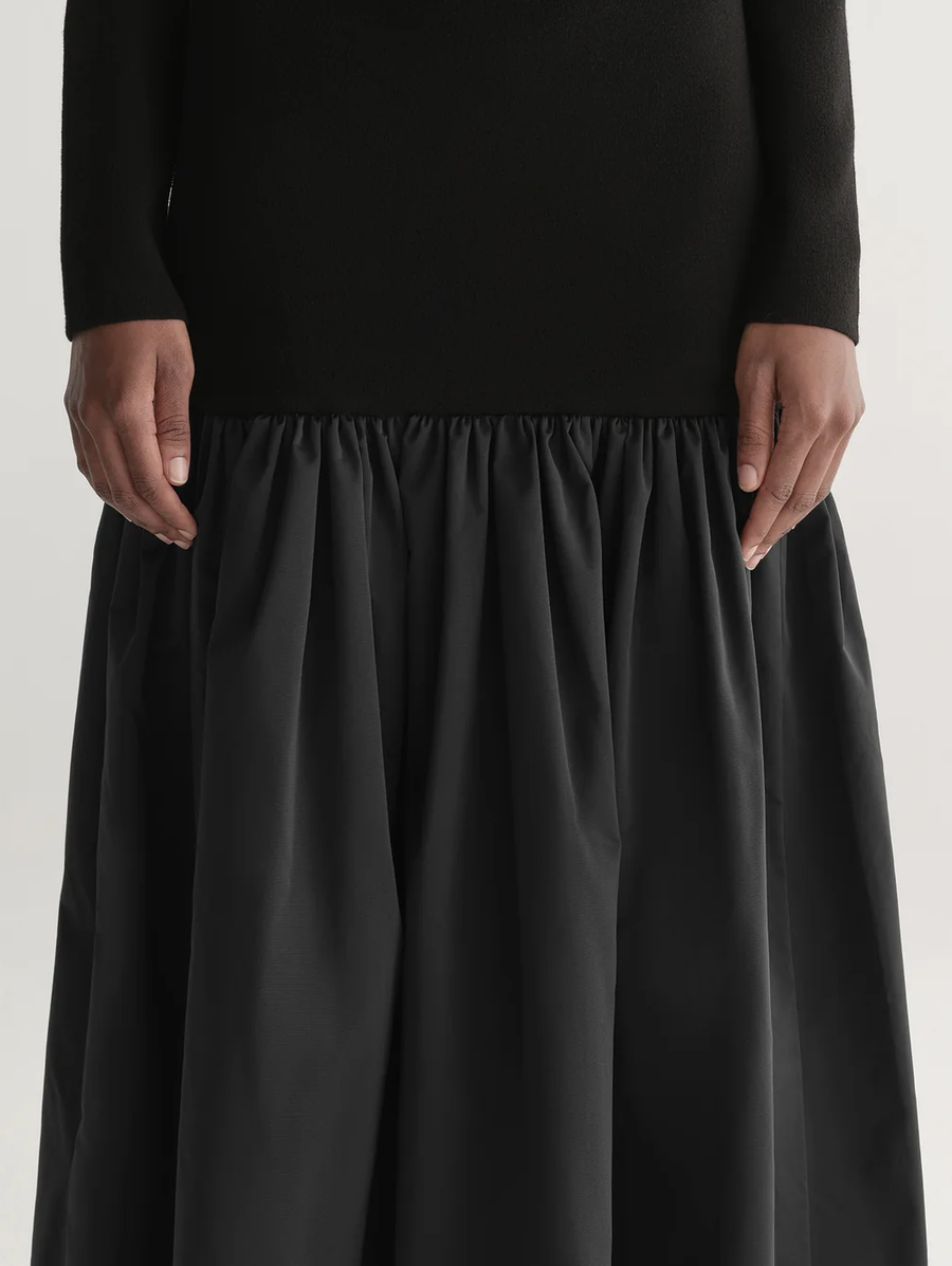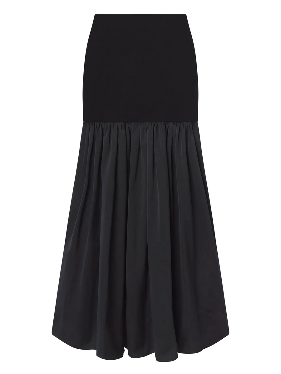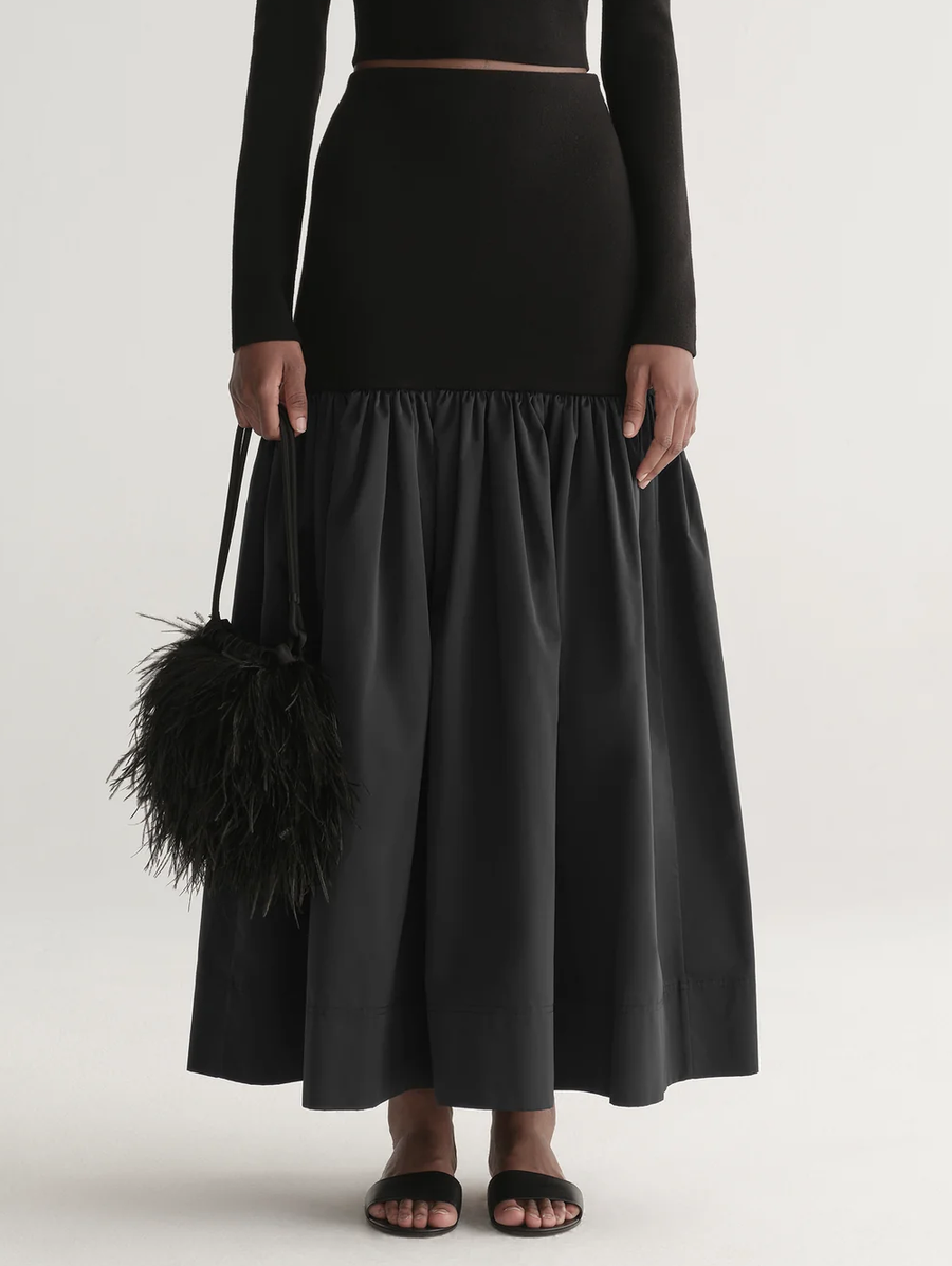 Amy Says... The Cami Skirt is a modern ballroom-inspired maxi designed to elevate your evenings. Crafted from 100% stretch merino wool, the fitted high-rise mini panel contrasts sharply with the gathered skirt, creating a bold, sculptural silhouette. Lightweight yet structured, it holds shape and adds instant drama to any look. Designed to pair with the matching Jo Top or your favorite tops and jackets for versatile styling. Shop Skirts.