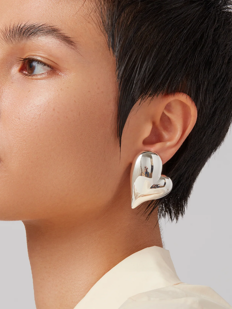 Amy Says... The shortcut to an effortless asymmetrical look, one of these heart-shaped earrings is flipped upside down. Consider these the most comfortable and lightweight statement earrings you'll ever wear, thanks to the hollowed-out engineering. Plus, they're paired with our best selling Lobe Lifters for an extra bout of support. Finished in high-polish silver. Shop Jewelry.