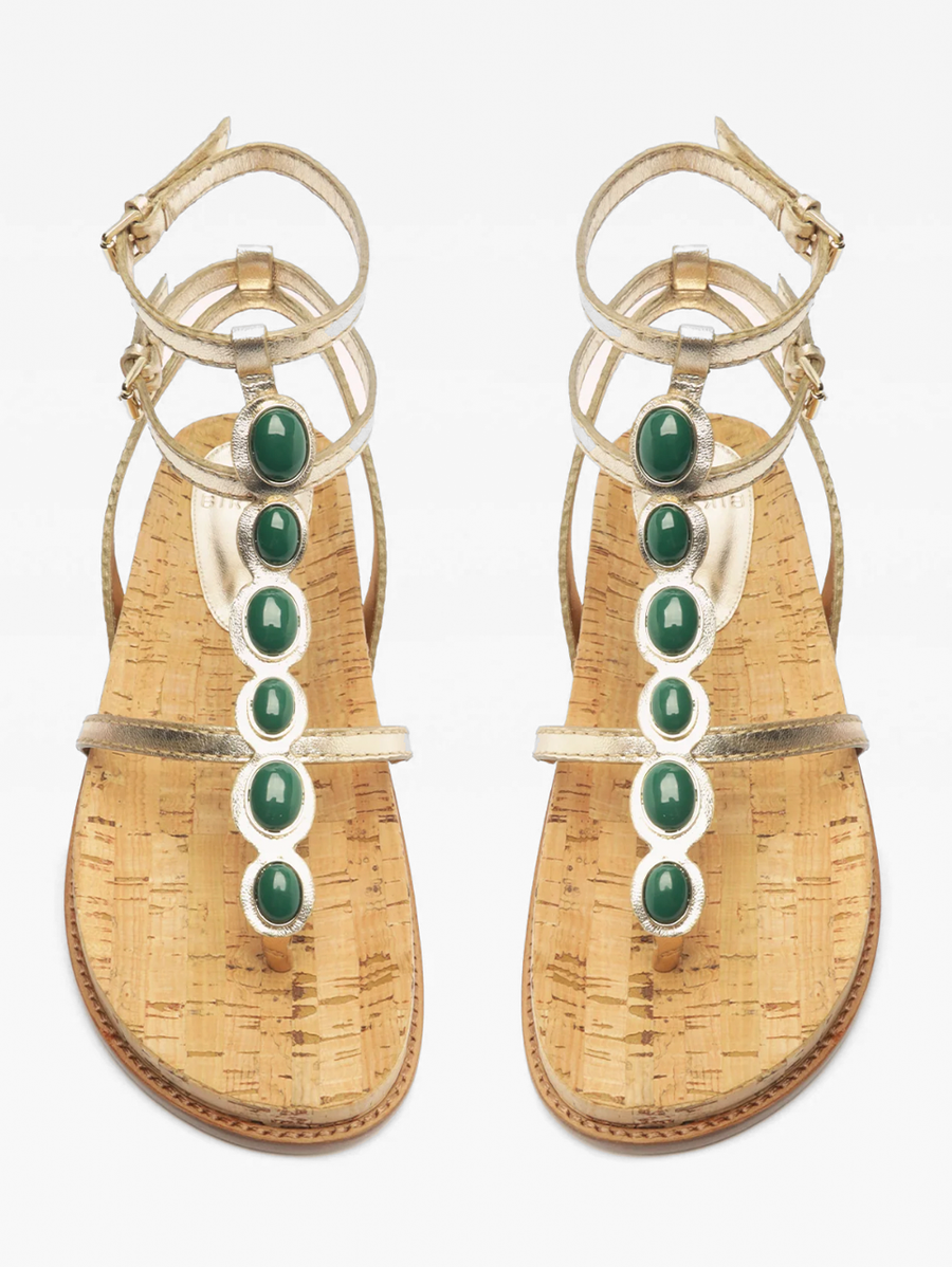 Jade Golden T-Strap Sandal