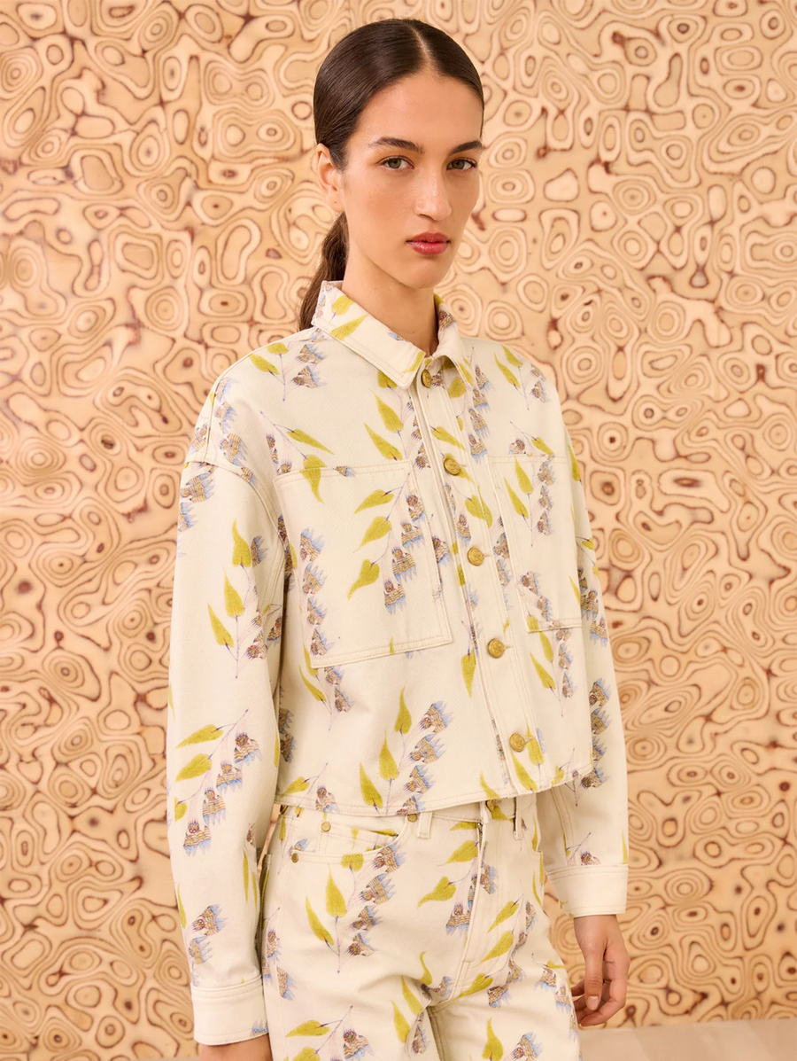 A beloved signature, the Bobbi Jacket is reimagined in a creamy hue with fluid, dream-like botanicals from the work of renowned Art Brut painter Anna Zemánková. This limited-edition style features a boxy fit that evokes modern elegance and coordinates beautifully with the matching Willow Jean. Shop Jackets.