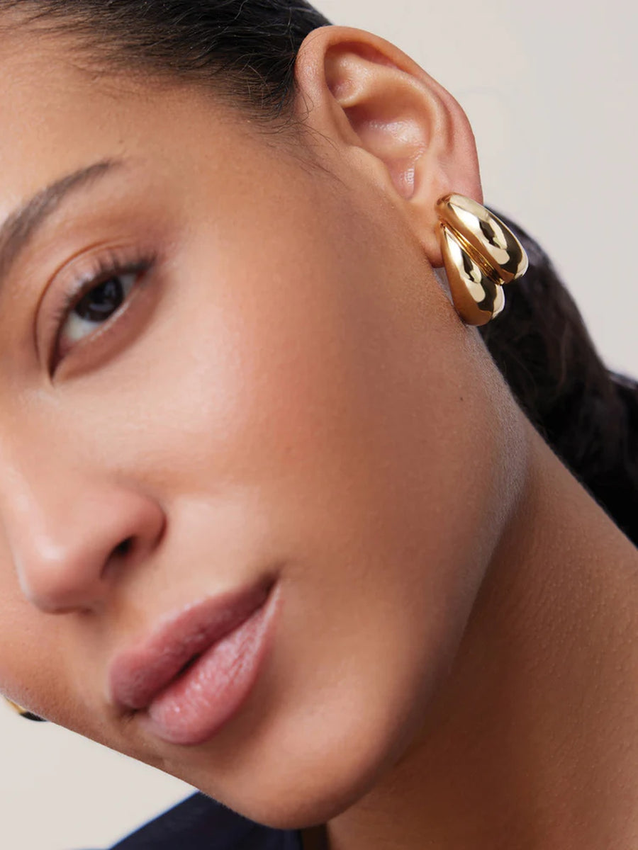 Amy Says...A layered hoop look in one bold silhouette. These sculptural gold earrings are hollowed for a lightweight, easy feel. Designed with our Lobe Lifters for added support and lift, they balance comfort with statement style. Finished in high-shine gold.