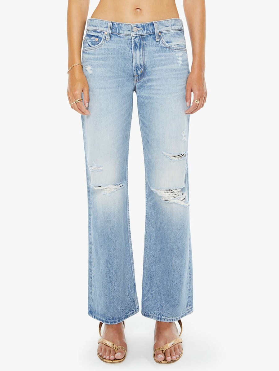 Amy Says... A mid-rise bootcut with a zip fly, looser leg and a 30-inch inseam with a clean hem. Cut from OMG SUPERIOR rigid denim, FAFO is a limited-edition light blue with whiskering, fading and tears at the knees. These jeans are rigid and take time to break in. MOTHER says patience is a virtue. Shop Denim. -
