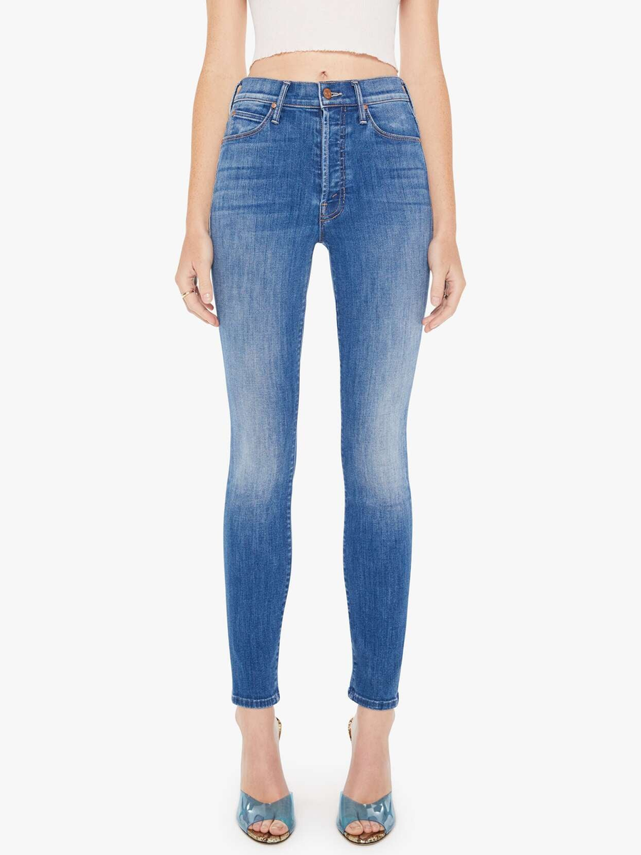 Amy Says... This high-rise skinny jean has a 29-inch inseam and a clean hem. Made from denim with a touch of stretch, We Got The Beat is a mid-blue wash with whiskering and fading at the knee.
