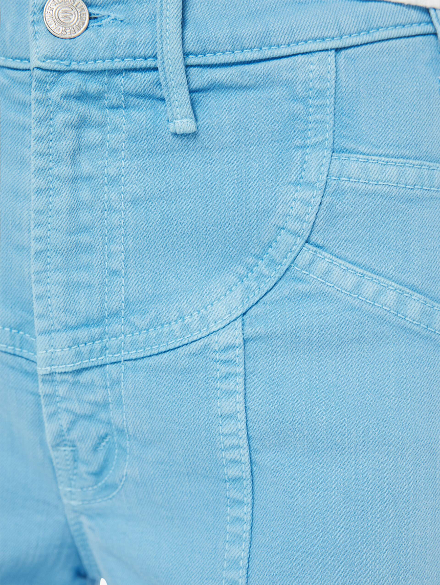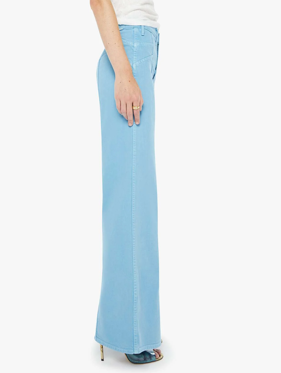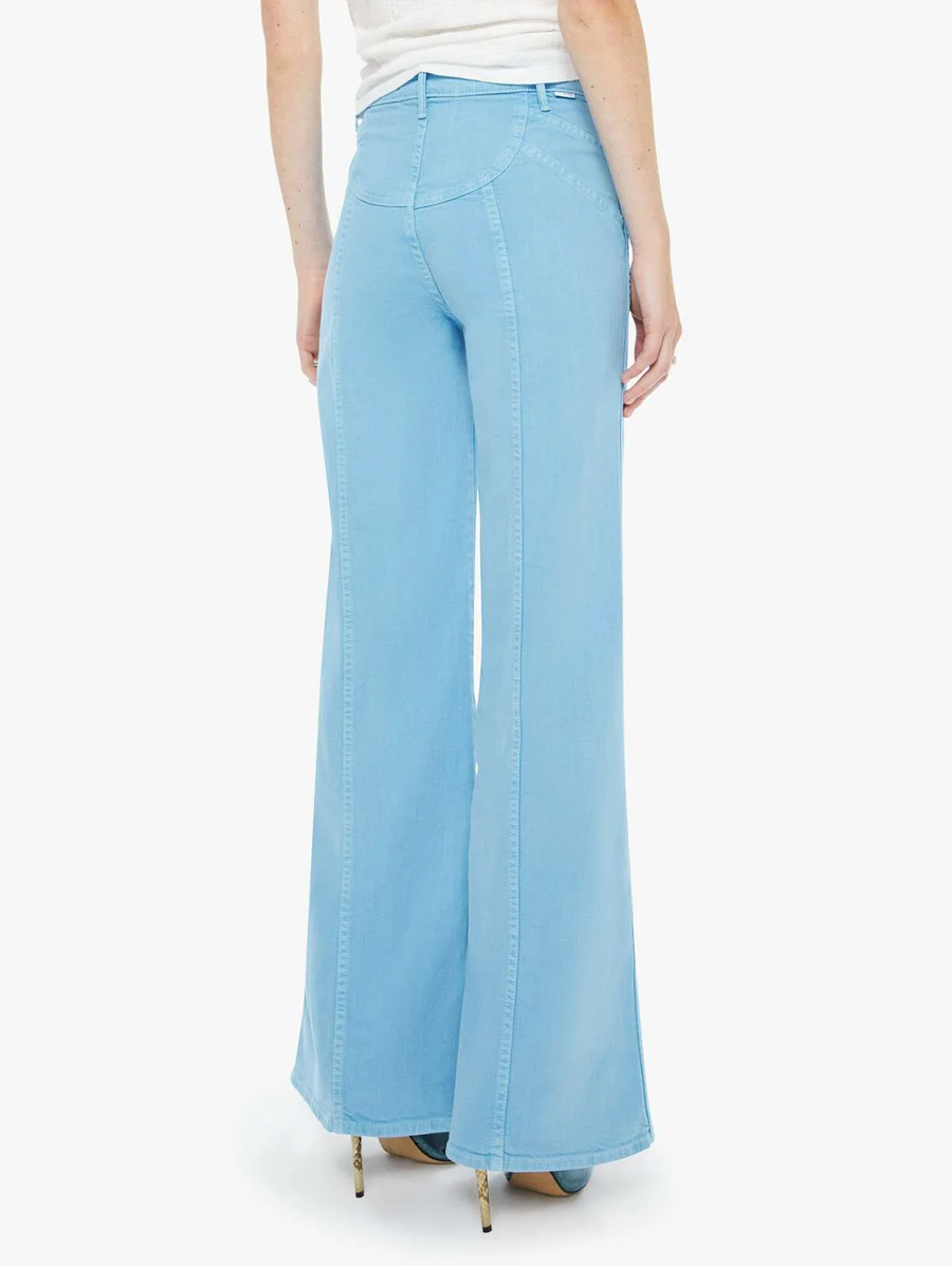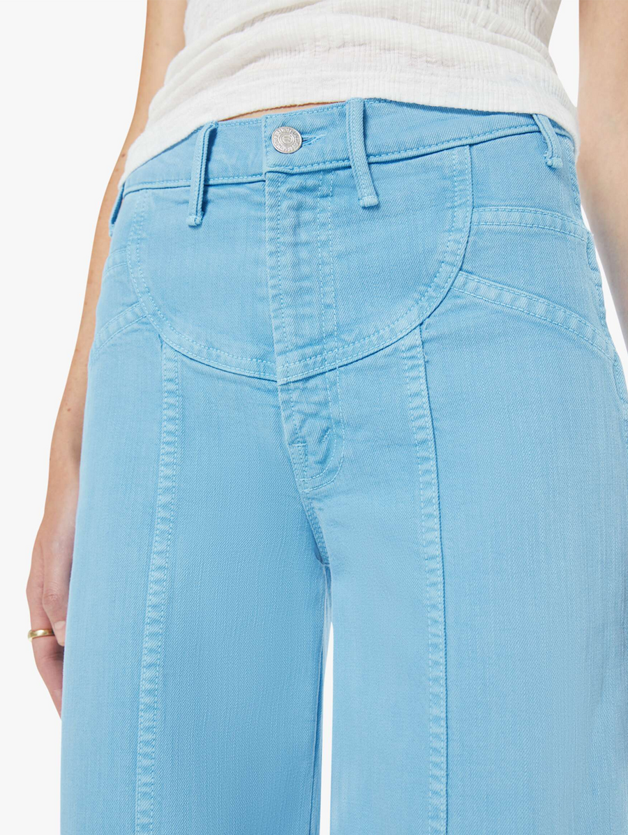 Amy Says... 70s-inspired wide leg jeans with a high rise, zip fly, sun-shaped seamed details at the waist, a long 32-inch inseam and a clean hem. Made from semi-rigid SUPERIOR denim, the pants are designed in light blue. These jeans are semi-rigid and take time to break in. MOTHER says patience is a virtue. Shop Denim. -