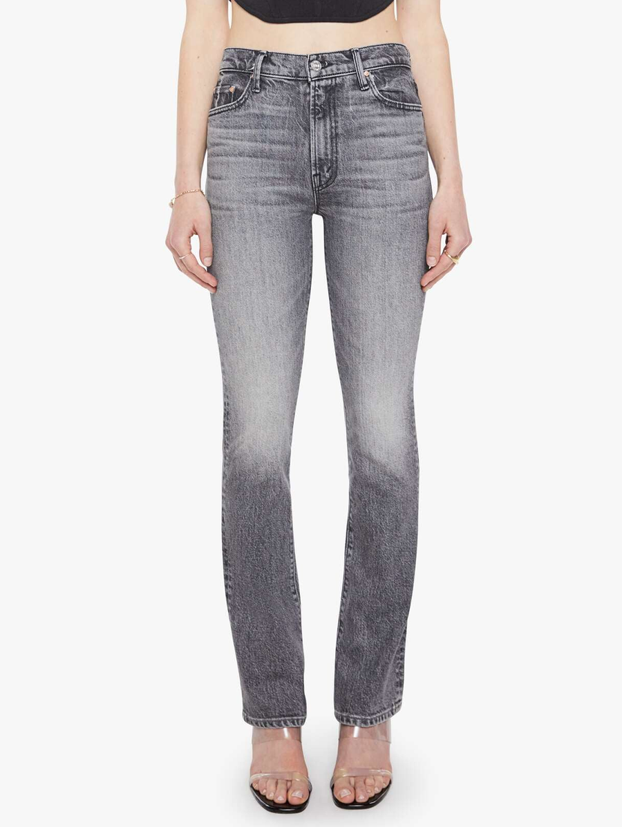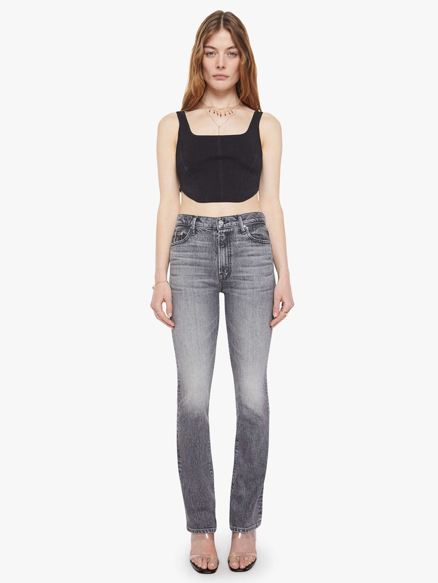 Amy Says... Birds of a feather. High-waisted bootcut jeans with a zip fly and a long 31-inch inseam with a clean hem. Made from semi-rigid SUPERIOR denim, Magpie is a dark grey with whiskering and fading at the knees. These jeans are semi-rigid and take time to break in. MOTHER says patience is a virtue. Shop Denim.