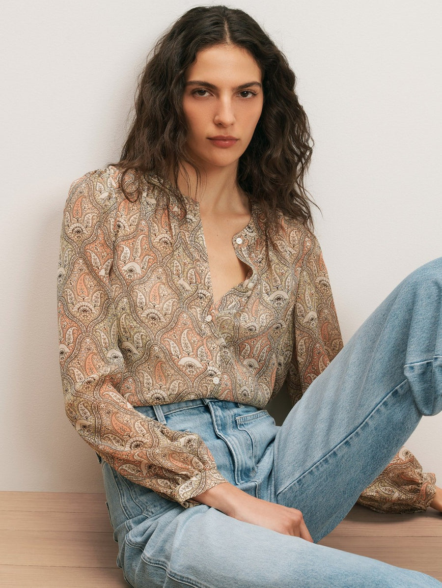 Amy Says... A printed top cut with the kind of polish that makes your most-worn bottoms look intentional. The gathered details and relaxed drape give it movement without losing structure. Shop Tops.