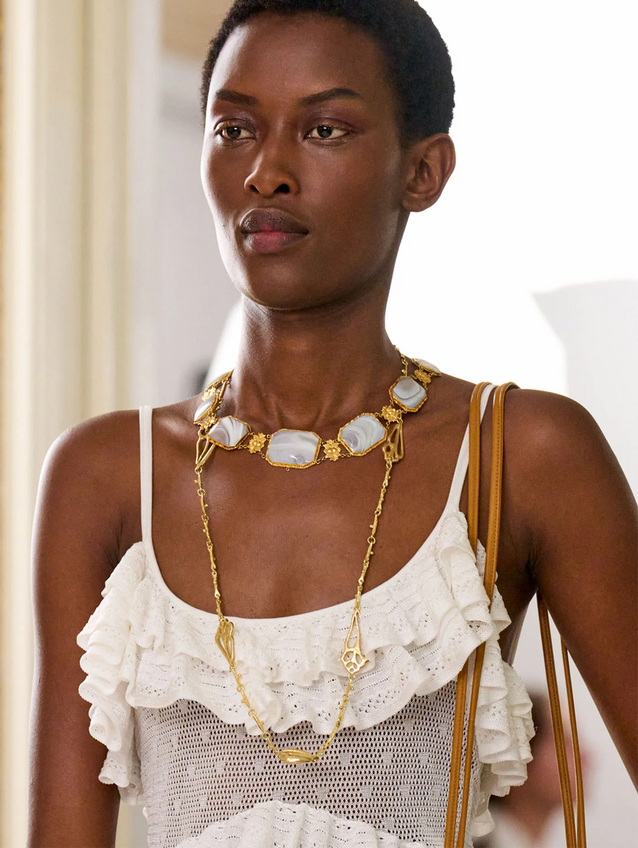 Amy Says... Featured in Look 22 on the SS26 Ulla Johnson Runway, the Bania Bodysuit is crafted with lace-inspired pointelle stitches and knitted ruffles for poetic movement. Designed with delicate spaghetti straps and a slim fit, this white style serves as a versatile base layer with a feminine touch. Shop Tops.