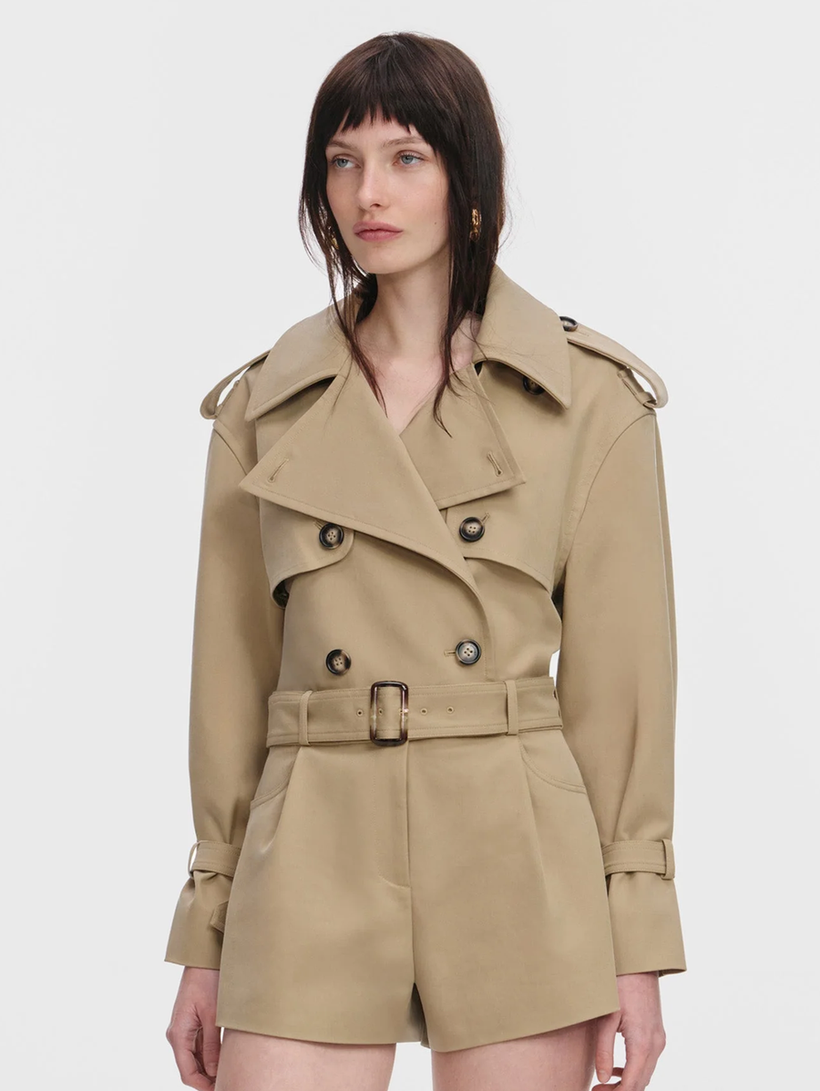 Amy Says... A trenchcoat-inspired cut and exaggerated lapels transform the utilitarian jumpsuit into a high fashion staple. Style with glossy boots for day or add heels for an edgy take on evening glamour. Shop Rompers.