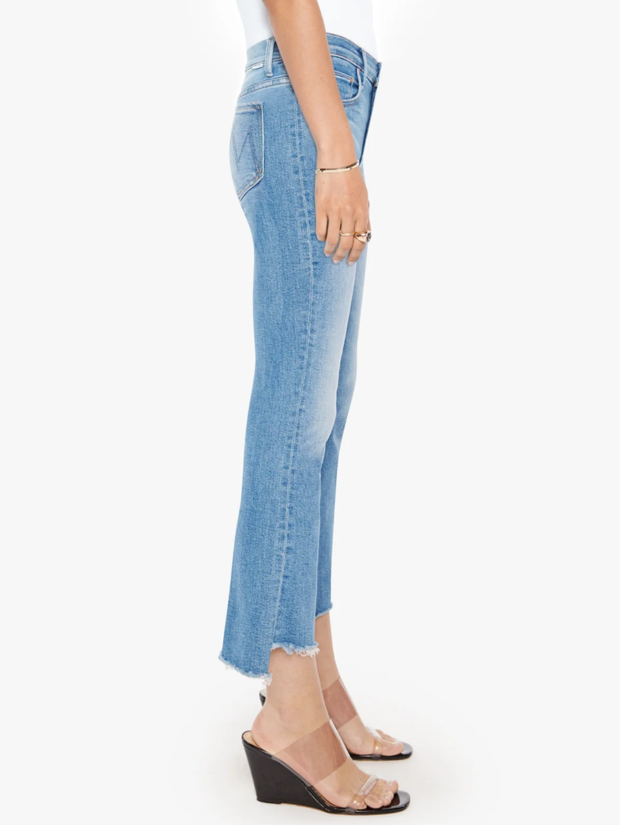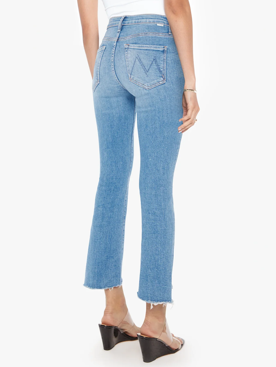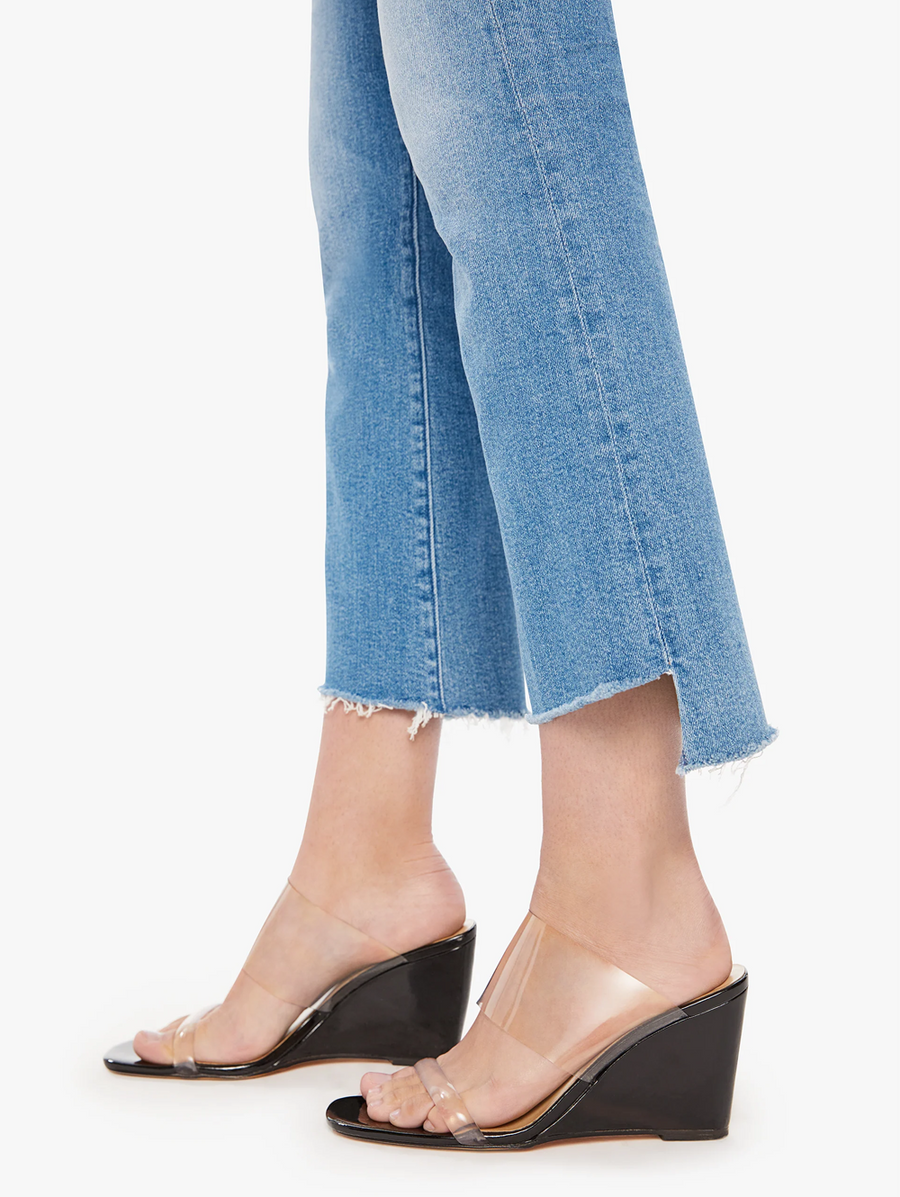 Amy Says... Color me surprised. This iconic high-waisted bootcut is cropped at the ankle with a frayed step-hem. The Insider Crop Step Fray is made from stretch denim, Out Of The Blue is a mid-blue wash with whiskering and fading at the knee. Shop Denim.