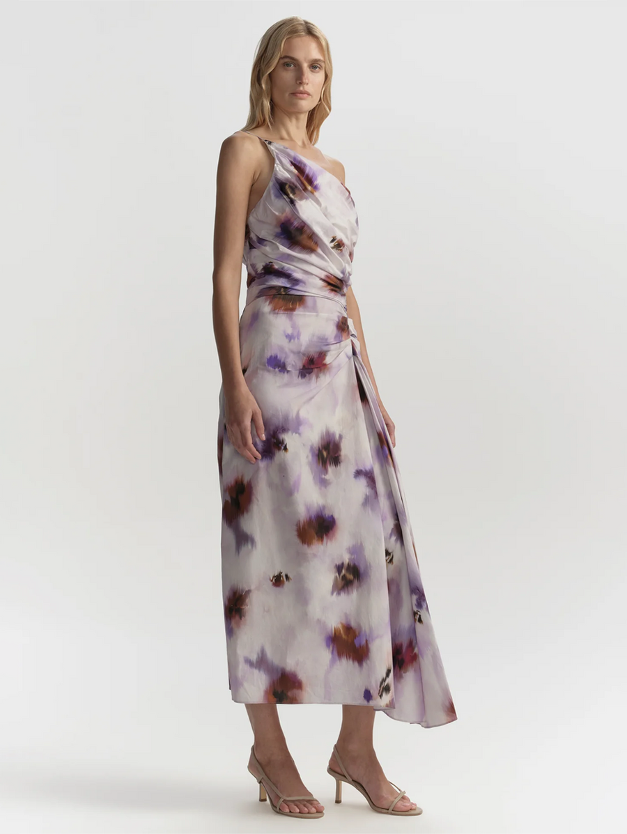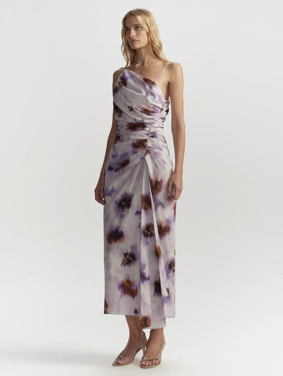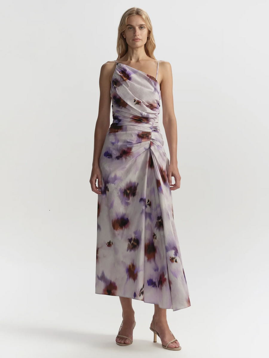 Amy Says... The Juno Dress is crafted from cotton poplin featuring a bold, hand-painted abstract print. This sleeveless midi silhouette features an asymmetrical neckline, delicate strap detail, soft ruching through the bodice, and a fluid draped skirt. This dress is made from non-stretch fabric, if in between sizes, we advise sizing up. Shop Dresses.