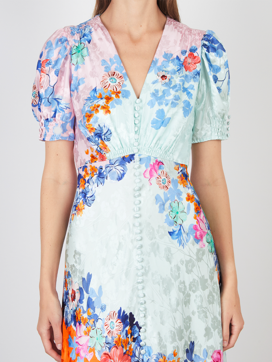 Amy Says... The Lea Long Dress is reimagined in a soft cascade of color-blocking, accented by sweeping placement of spring flowers, creating a dress with intense glamour yet romantic ease. The satin is realised in a masterly bias cut that flatters the figure. This fluid, graceful dress is a versatile option to style with heels or flats and accessories for day and special occasions. Shop Dresses.