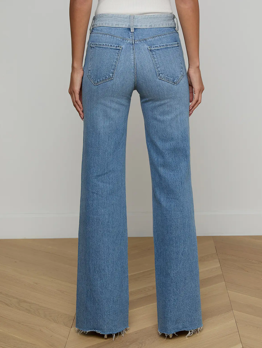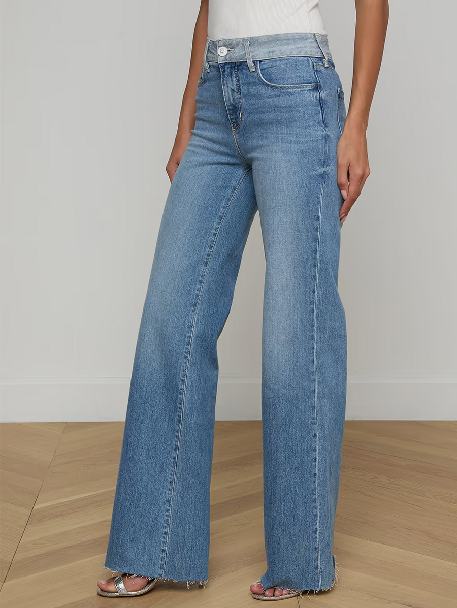 Amy Says... The Louane jean is a refined take on the wide-leg jean, designed with subtle flare. A wide contrasting waistband in a light wash adds a modern appeal. Shop Denim.