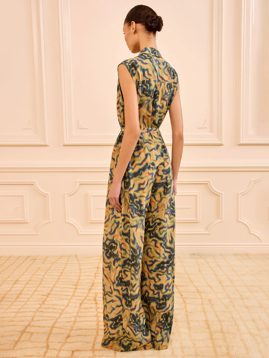 Amy Says... The Meera Jumpsuit is alive in pooling, overlapping hues inspired by a vintage ikat print. Tailored from silk crepe de chine, this multi-colored jumpsuit has a fluid overlay that creates graceful volume from the bodice to the wide leg. Shop Jumpsuits.