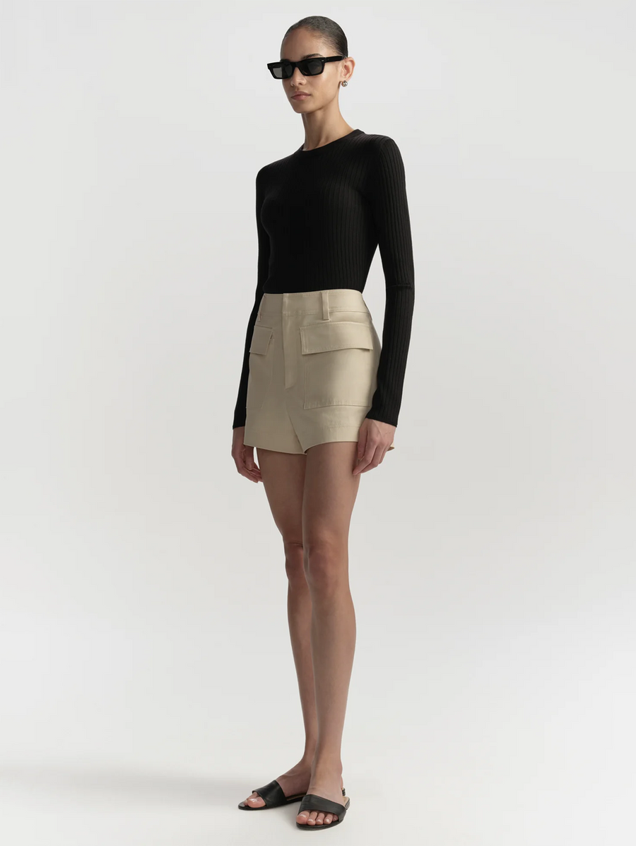 Am Says... The Oakley Short is crafted from a chic stretch cotton. This high-rise, tailored silhouette features oversized front pockets for a refined finish. Shop Shorts.