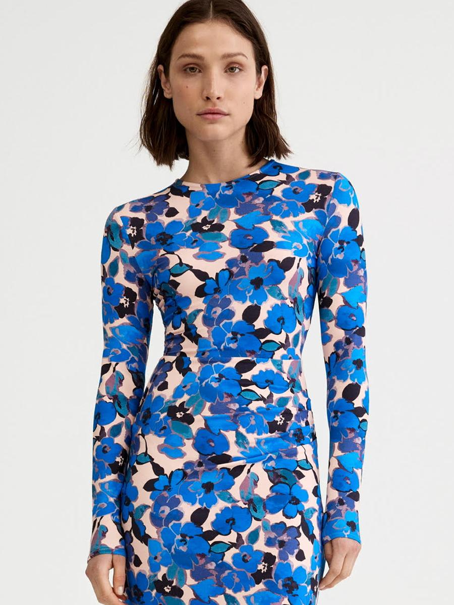 - Close-fitting with asymmetrical ruching to flatter the figure