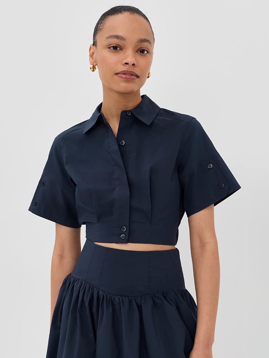 Amy Says... This short-sleeved button-down offers a modern take on classic tailoring. Crafted in crisp cotton poplin, it’s designed with clean lines and a cropped, structured silhouette that pairs effortlessly with separates. Shop Blouses.