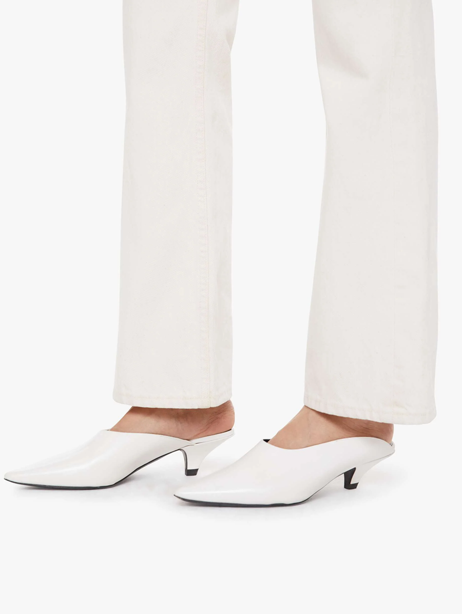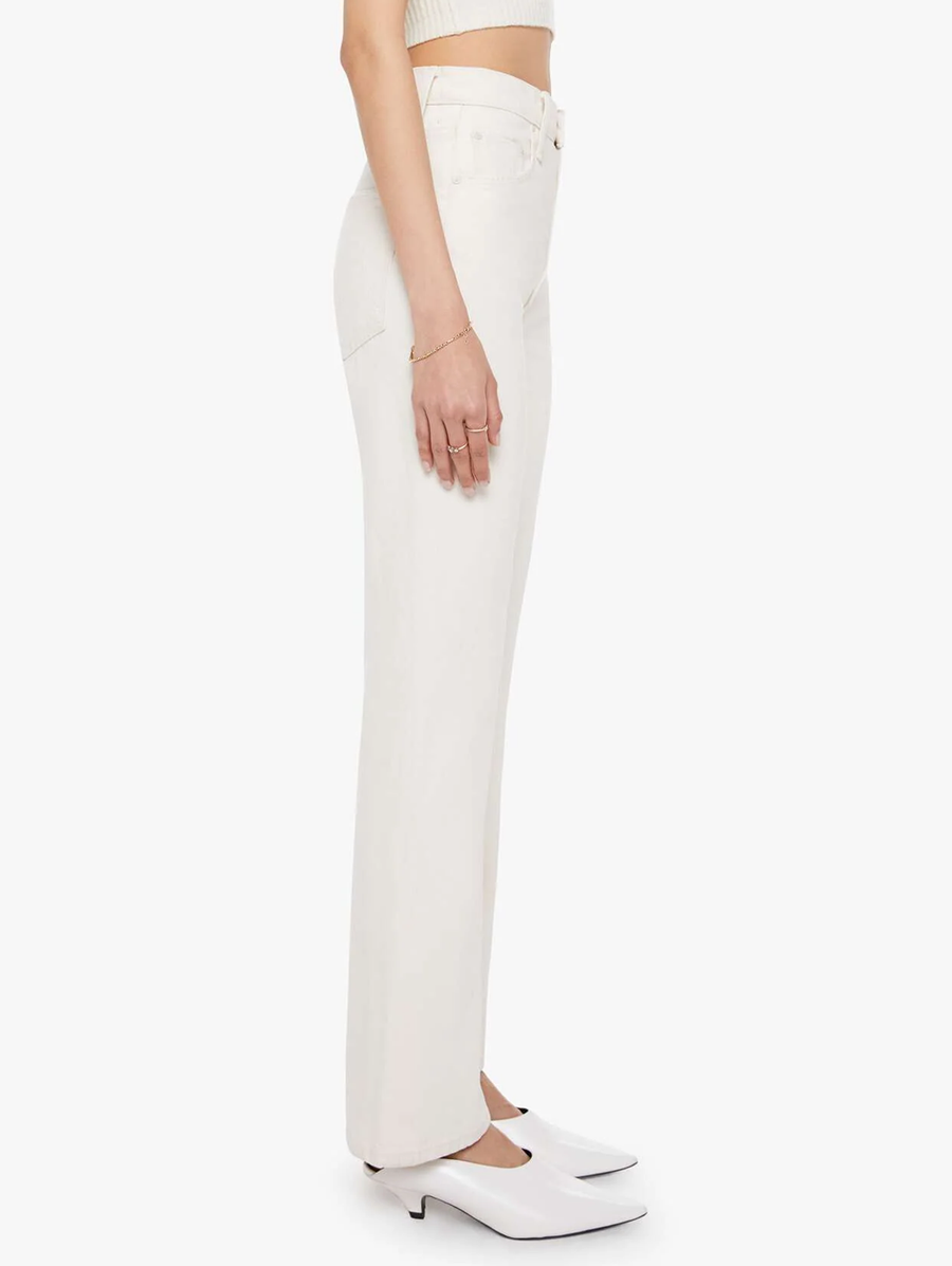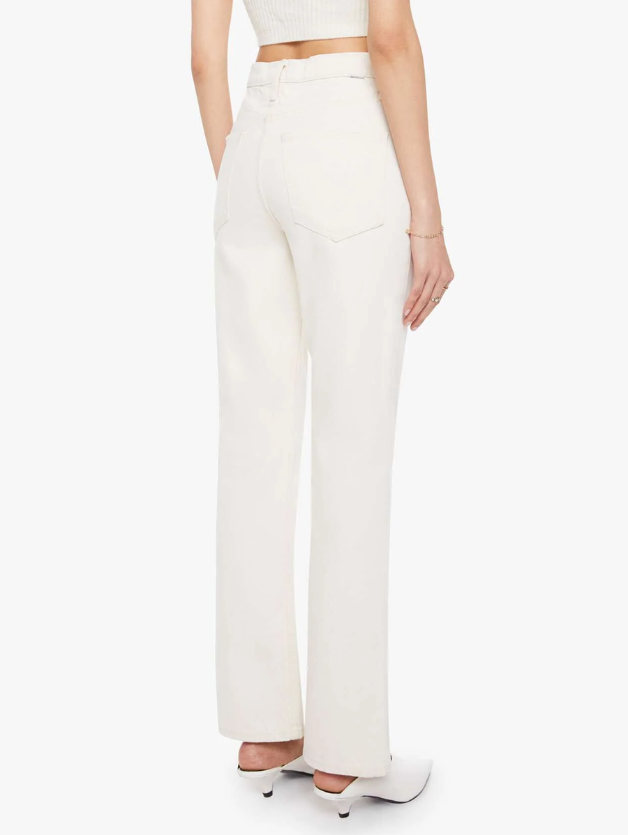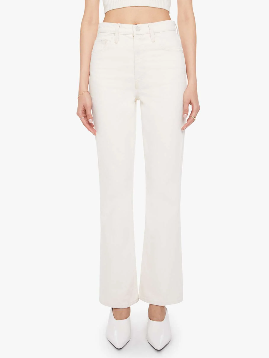 Amy Says... Designed to sit on the hips with a slouchy fit, these jeans feature a flared leg, zip fly, a 32.75-inch inseam and a super high rise with a slightly dropped crotch. Cut from rigid SUPERIOR cotton, Natural Selection is a creamy white with tonal hardware. These pants are rigid and take time to break in. MOTHER says patience is a virtue. Shop Denim. -
