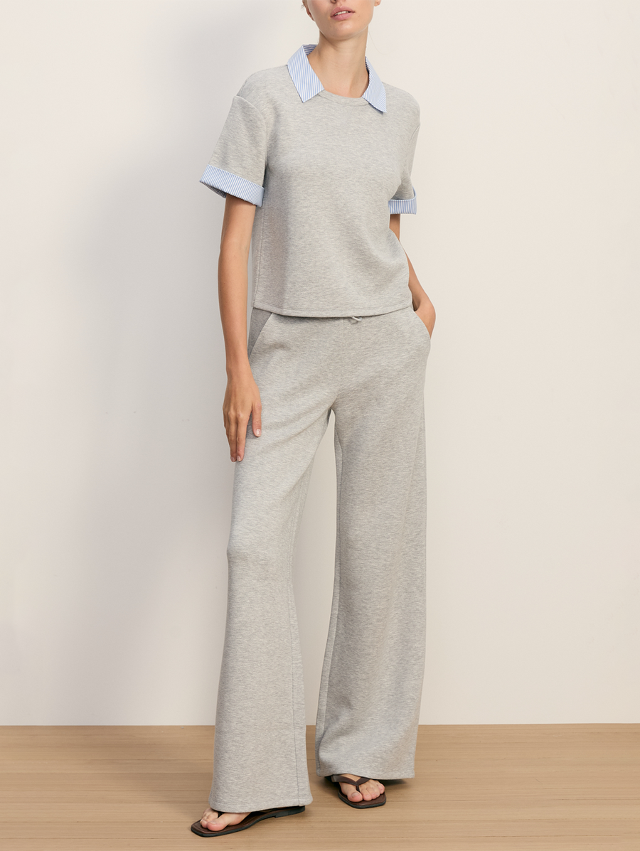 Amy Says... Smarten up sweatshirt style in an option that wears like you've layered a crisply striped shirt underneath. Pair with the matching Ernie pant for a more refined take on the sweatsuit. Shop Tops.