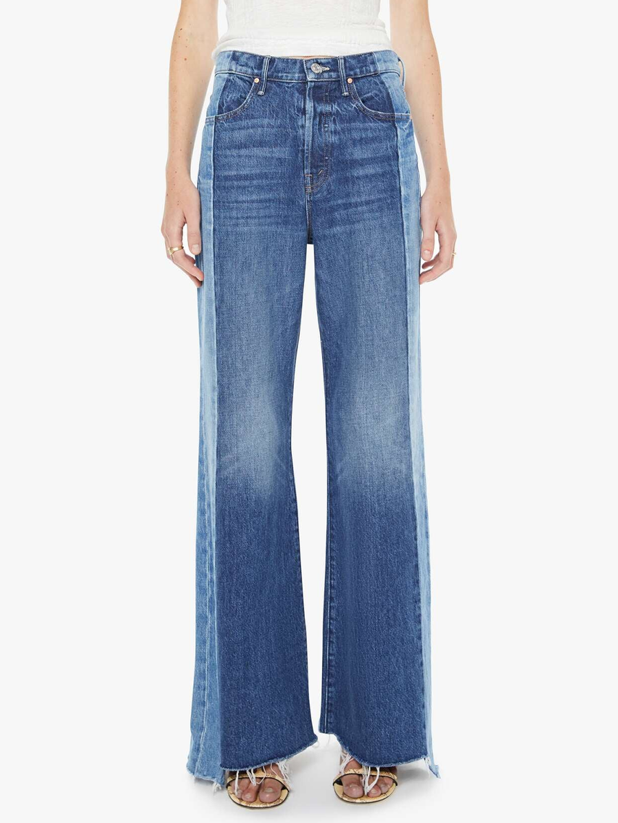 Amy Says... Made ya look. High-waisted wide-leg jeans with a button fly, long 32-inch inseam and a frayed, uneven hem. Made from rigid SUPERIOR denim, Double Take is mid blue with whiskering, fading and lighter panels down the outer leg. These jeans are rigid and take time to break in. MOTHER says patience is a virtue. Shop Denim. -