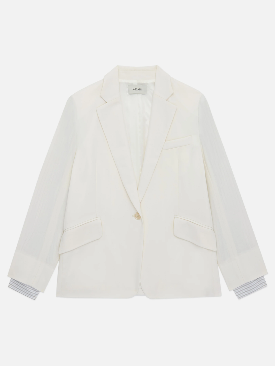 Amy Says... The Venue Blazer is a relaxed, unstructured silhouette crafted with a tomboyish nonchalance. It features built-in styling with a contrasting striped lining that extends through the inside sleeve to create a sharp, graphic layer. Designed with a classic notched lapel and a minimalist one-button closure, this piece is an effortless staple built for the rhythm of the city. Shop Blazers.
