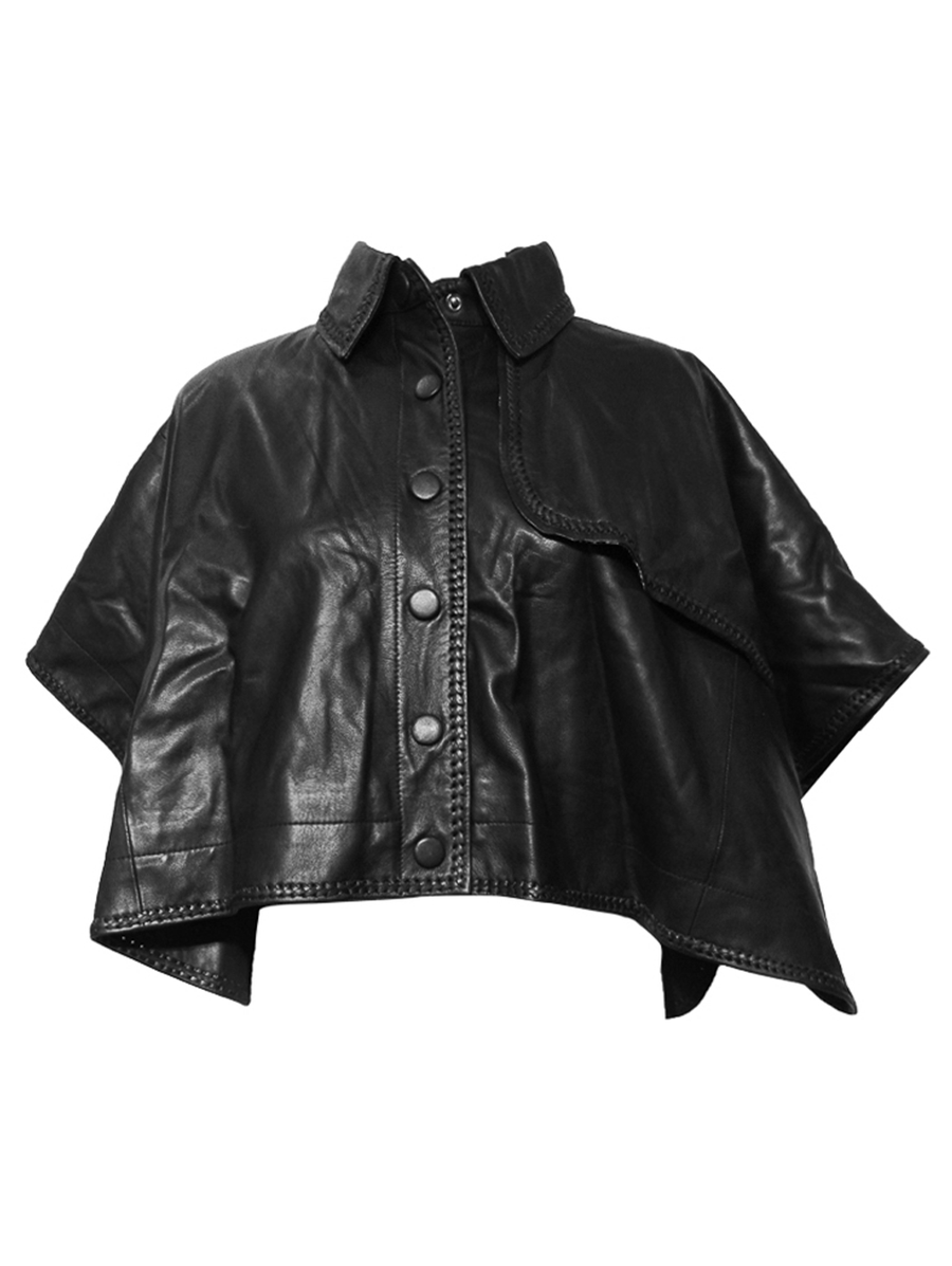 Vontel Onxy Black Leather Cape