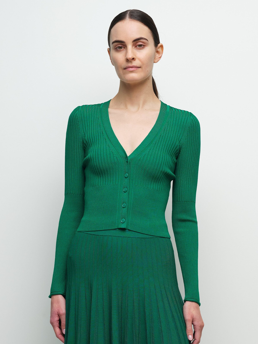 Amy Says... The Ailany Rib Knit Cardigan in Kelly Green. Crafted in compact rib knit, this fitted shrunken cardigan features a streamlined silhouette with button-front detailing. Shop Sweaters.