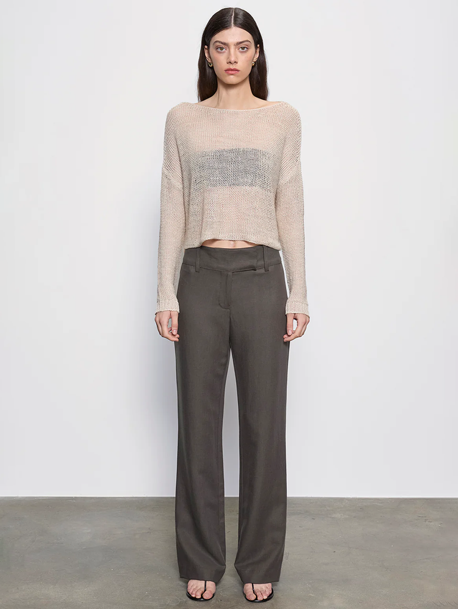 Linen Open Knit Bateau Sweater in Pearl Grey