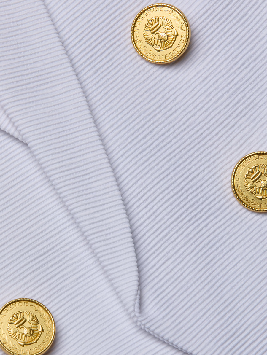 Amy Says... The bestselling open-front Brooke features a flattering, tapered fit. Crafted from a lightweight ribbed ottoman fabric featuring a cool, slick hand and subtle luster, this sharp, double-breasted blazer is now back in white and lined in a chic butterfly print. Shop Blazers.