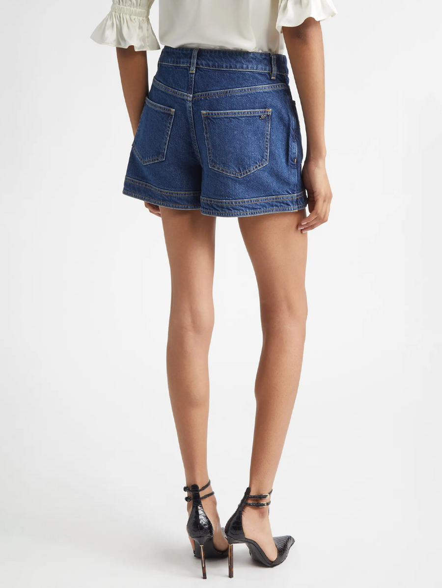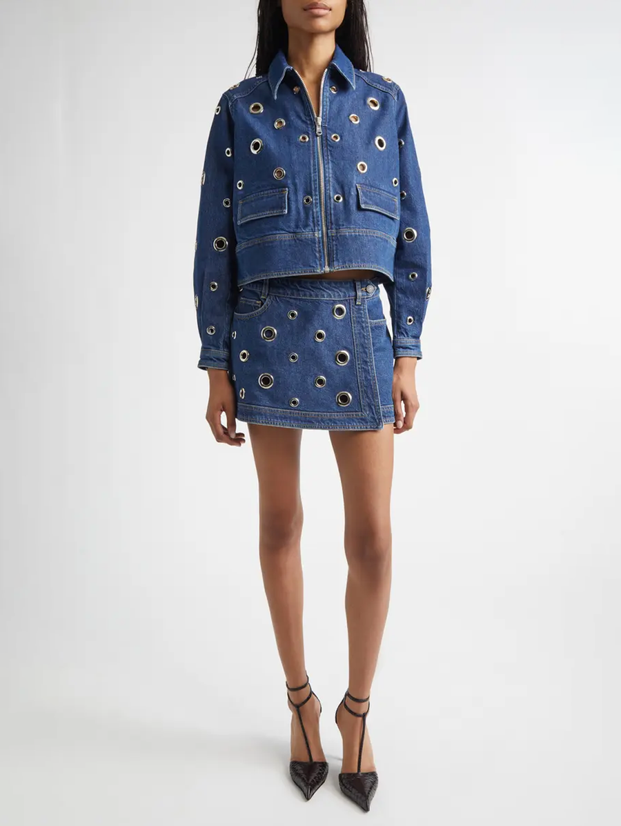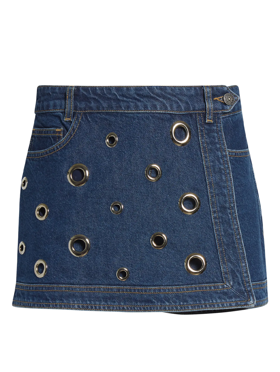 Amy Says... Heavy metal hits different when it perforates a kicky skort cut from perfectly faded denim. The Marcia Dednim Skort in tide blue combines elegance and practicality with its asymmetrical wrap-style front. Featuring built-in shorts for added comfort and coverage, it’s designed with a button closure for a sleek, secure fit. Shop Skirts.