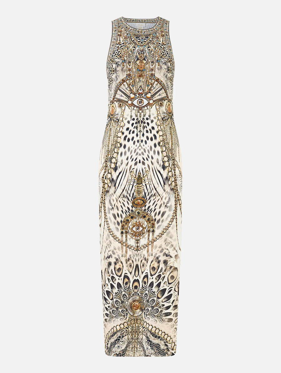 Amy Says... The Lady Lionheart Jersey Tank Dress is a handcrafted silhouette designed by our in house artisans. Reimagined in an exclusive limited edition print, this sleeveless dress features a timeless tank neckline that flows into a figure-hugging midi length. Meticulously designed to caress the curves and cinch the waistline for captivating comfort. Shop Dresses.