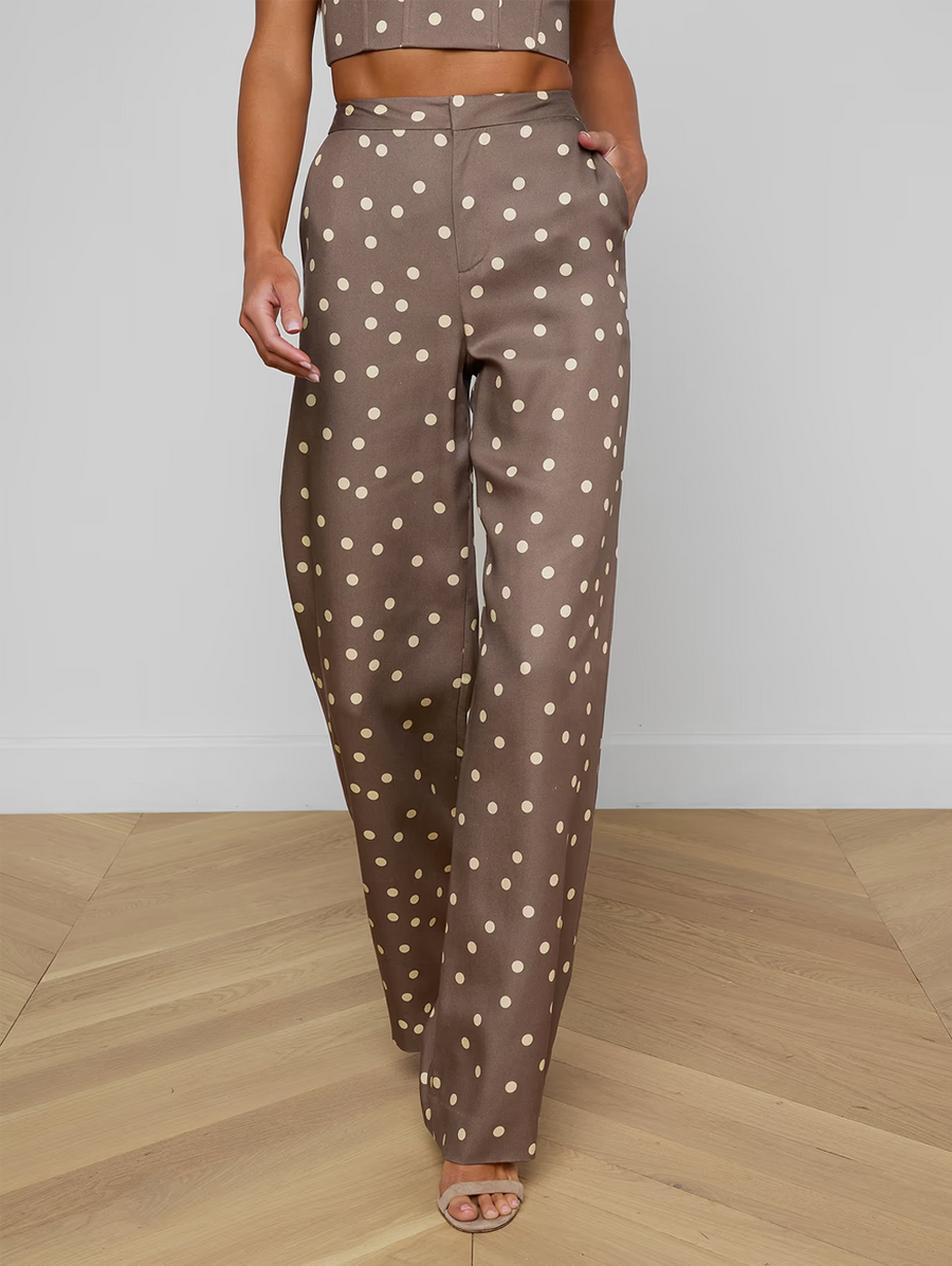 Amy Says... The L’AGENCE favorite straight-leg trouser, fitted through the hips and relaxed through the leg. A full straight leg creates a beautifully balanced silhouette—now back in a polka dot print. Shop Trousers.