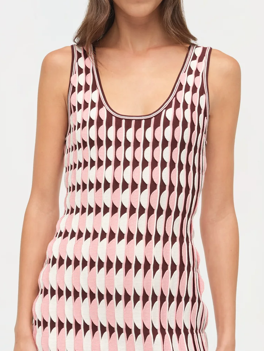 Amy Says... The Lorien Scalloped Knit Mini Dress in Dusty Rose Multi. Crafted in a structured knit, this sleeveless mini dress contours the body with a subtle stretch and sculpted shape. The scalloped pattern lends texture and depth to the clean, fitted silhouette. Finished with clean edges for a precise, minimal look. Shop Dresses.