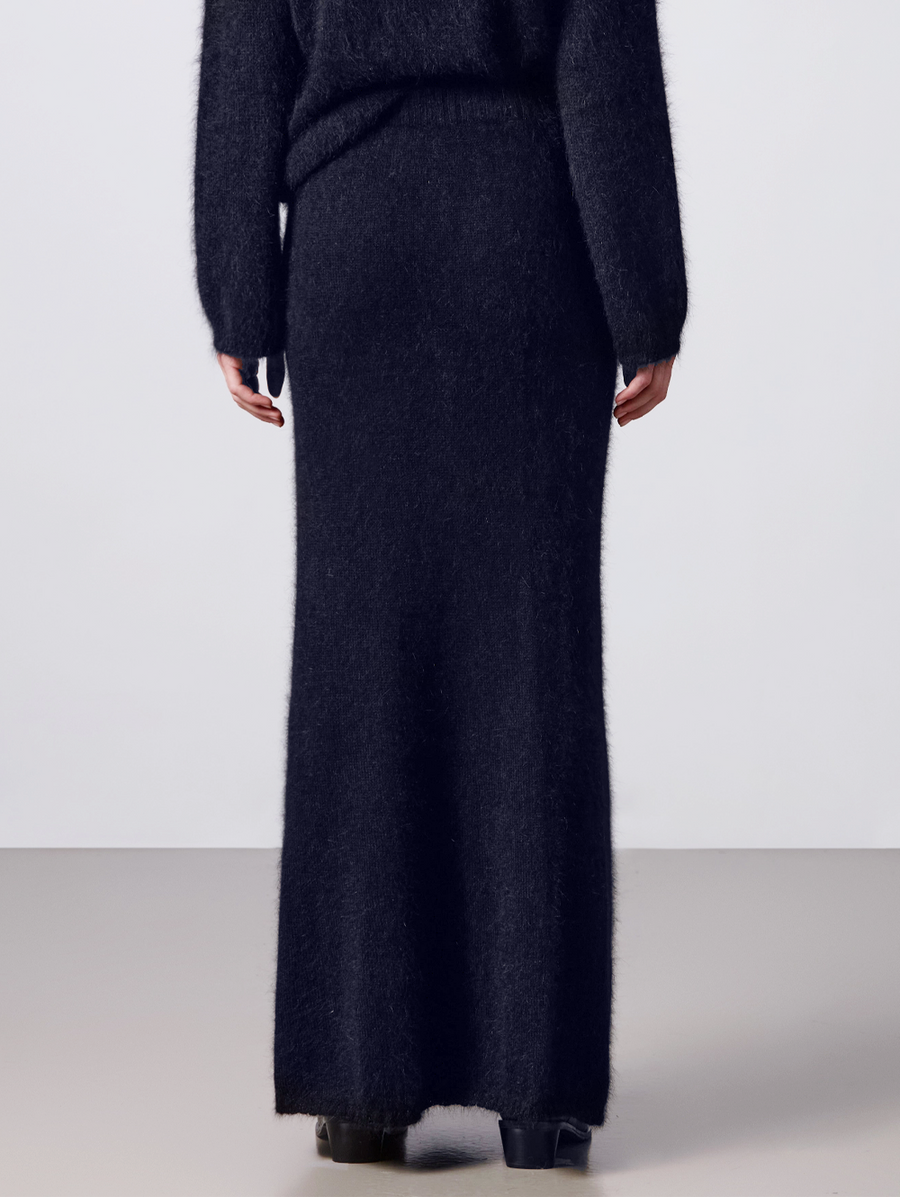 Amy Says... The Gonna Maxi Skirt is expertly woven from soft angora wool with a fuzzy texture. It features a high waistband for comfort and versatility and is finished with ribbed hems. This long skirt style is a hardworking staple, pair it with the coordinating top for a sleek, dress-up look. Shop Skirts.