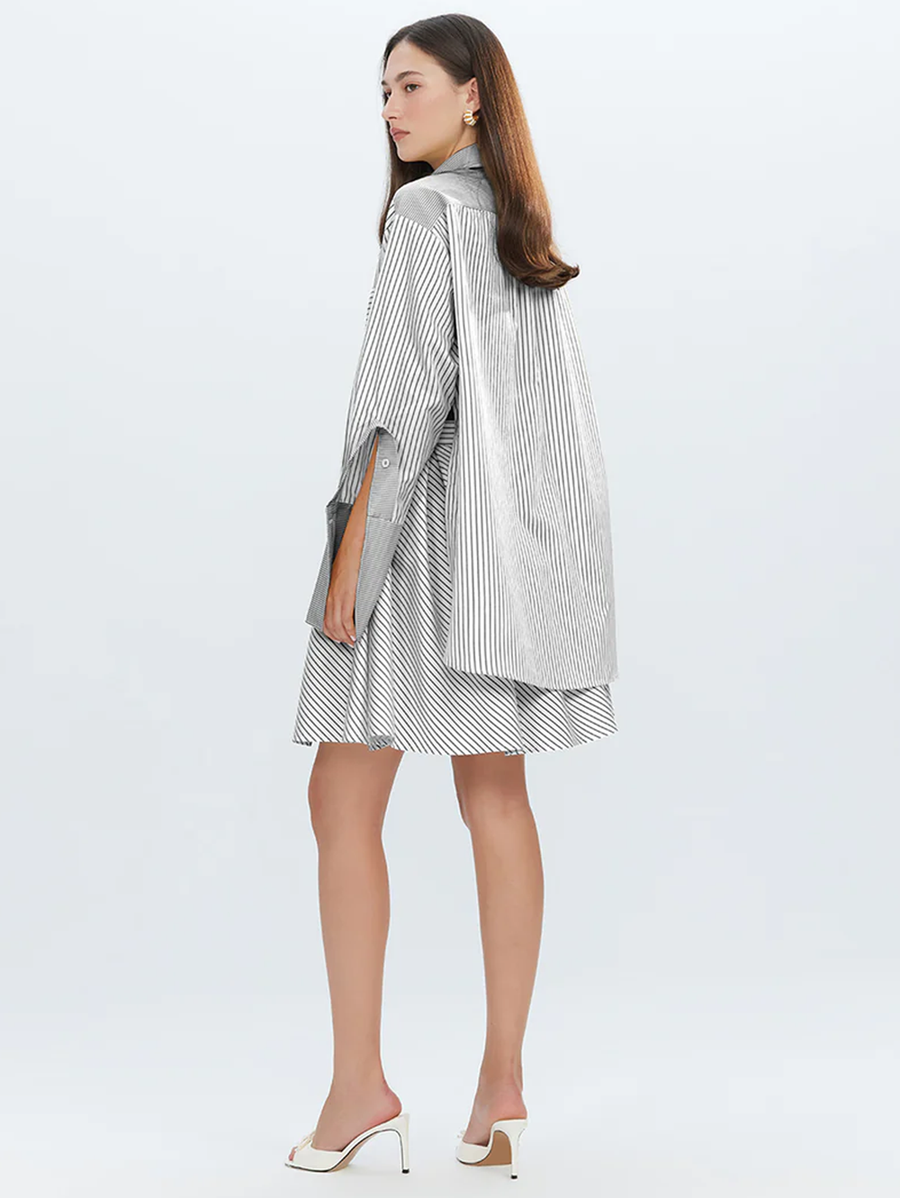 Amy Says... A structured yet playful take on stripes, this box-pleated mini skirt features a mixed-stripe waistband and side pockets for effortless style and function. The inverted pleats add volume and movement, making it a go-to piece for statement dressing.