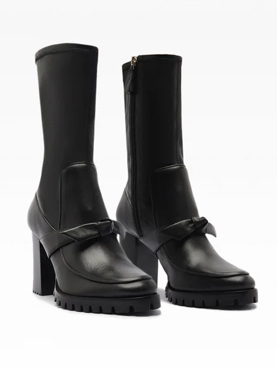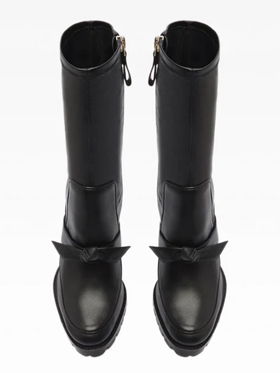 Amy Says... Combining the impeccable fit of stretch with the softness of Nappa Kiss. this 90mm heeled boot exudes modern elegance. The Clarita bow adds a feminine and refined touch, creating a perfect balance between sophistication and comfort. Elevate your style and stand out with the Clarita 90 Stretch Boot from Alexandre Birman. Made for versatility and contemporary elegance, it's a must-have for any modern wardrobe. Shop Shoes.