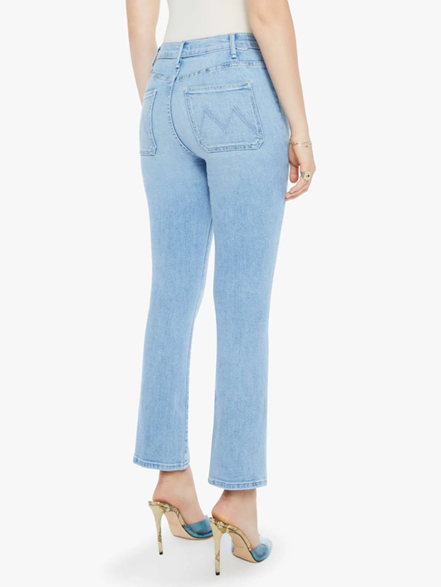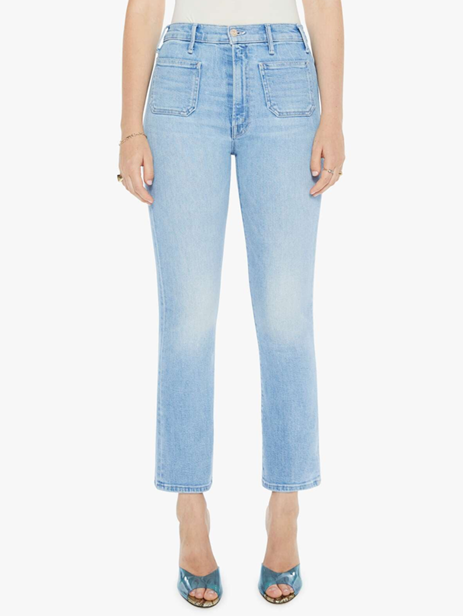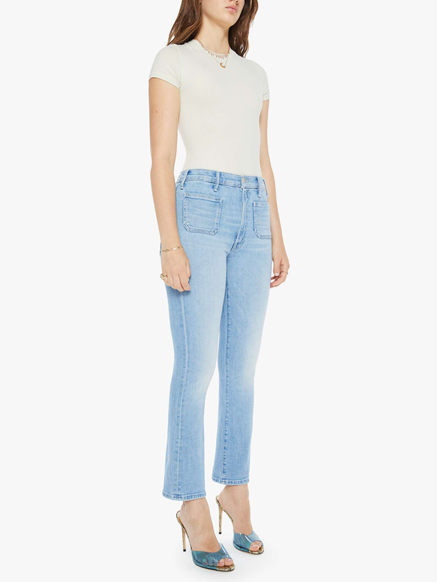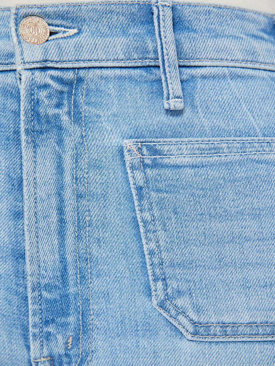 Amy Says... Ride the airwaves. This high-rise flare is designed with patch pockets, an ankle-length inseam and a clean hem. Made from stretch denim, Tune In, Tune Out is a light blue with subtle whiskering and fading throughout.