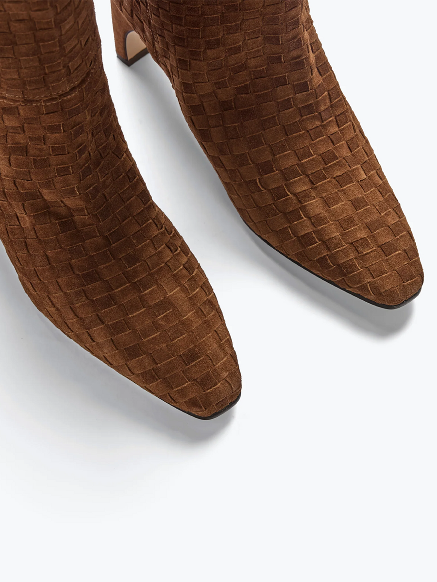 Amy Says... Statement and undeniably beautiful–the handwoven Lennox tall boot is made to elevate everything and is truly a wearable work of art. Handcrafted in Spain. Freda Salvador shoes are made from the highest quality leather which will last season after season. Leather is a natural material and will give with wear. This material may feel snug when you first put them on. This is normal as they begin to soften and form to your foot. Before you know it, they will become your everyday favorite. Shop Shoes.