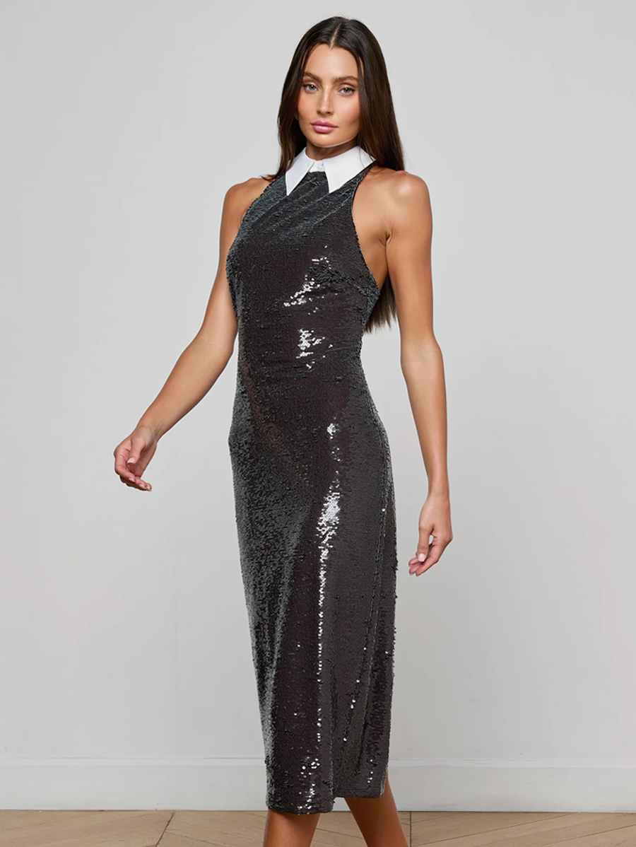 Lilith Sequin Collared Midi Dress