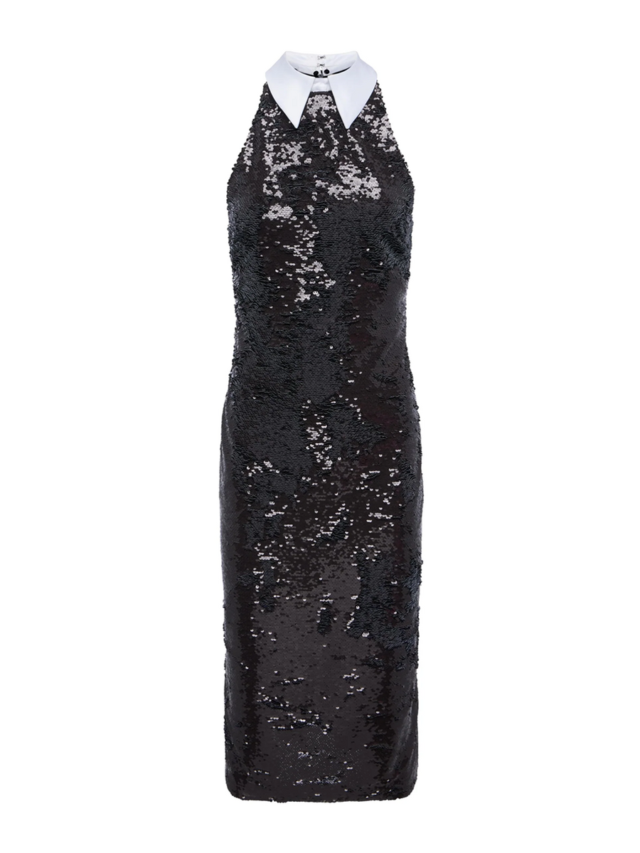 Amy Says... The Lilith Sequin Collared Midi Dress debuted at our Fall ‘25 NYFW presentation. The Lilith dress takes the glamour of sequins and gives it a tailored finish. Featuring a structured white poplin collar, it’s fully embellished with high-shine black sequins for a statement-making look. The fitted shape hugs the body just right, perfect for nights out when you want polish with impact. Shop Dresses.