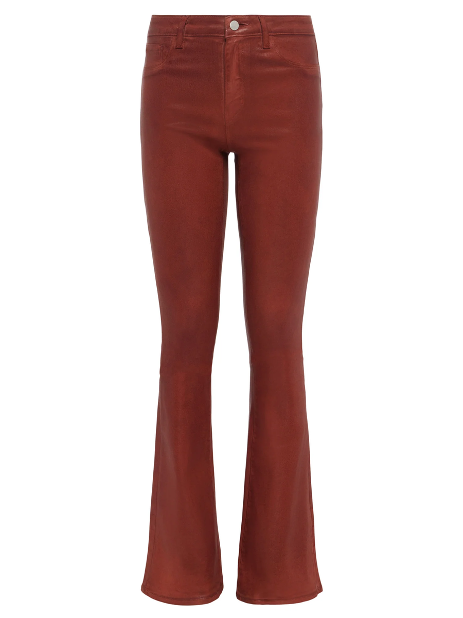 Amy Says... Marty is a tall flare jean, fitted from just above natural waist to knee, featuring the brand's widest flared hem. This leather-look coated stretch denim is crafted with an ultra-high-rise flare in a rich ginger hue.