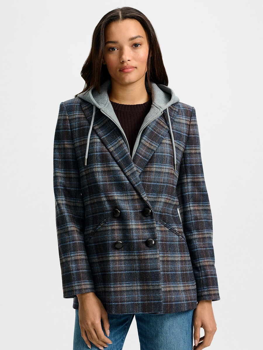 Amy Says... The boyfriend jacket, perfected. Crafted from a premium Italian wool blend, the Oria features a relaxed, boxy fit in a preppy plaid. Designed with a double-breasted front, it’s finished with a peak lapel and slanted welt pockets for a timeless tailored feel. Pair this plaid blazer with denim for everyday polish—then layer in your favorite dickey. Shop Blazers.